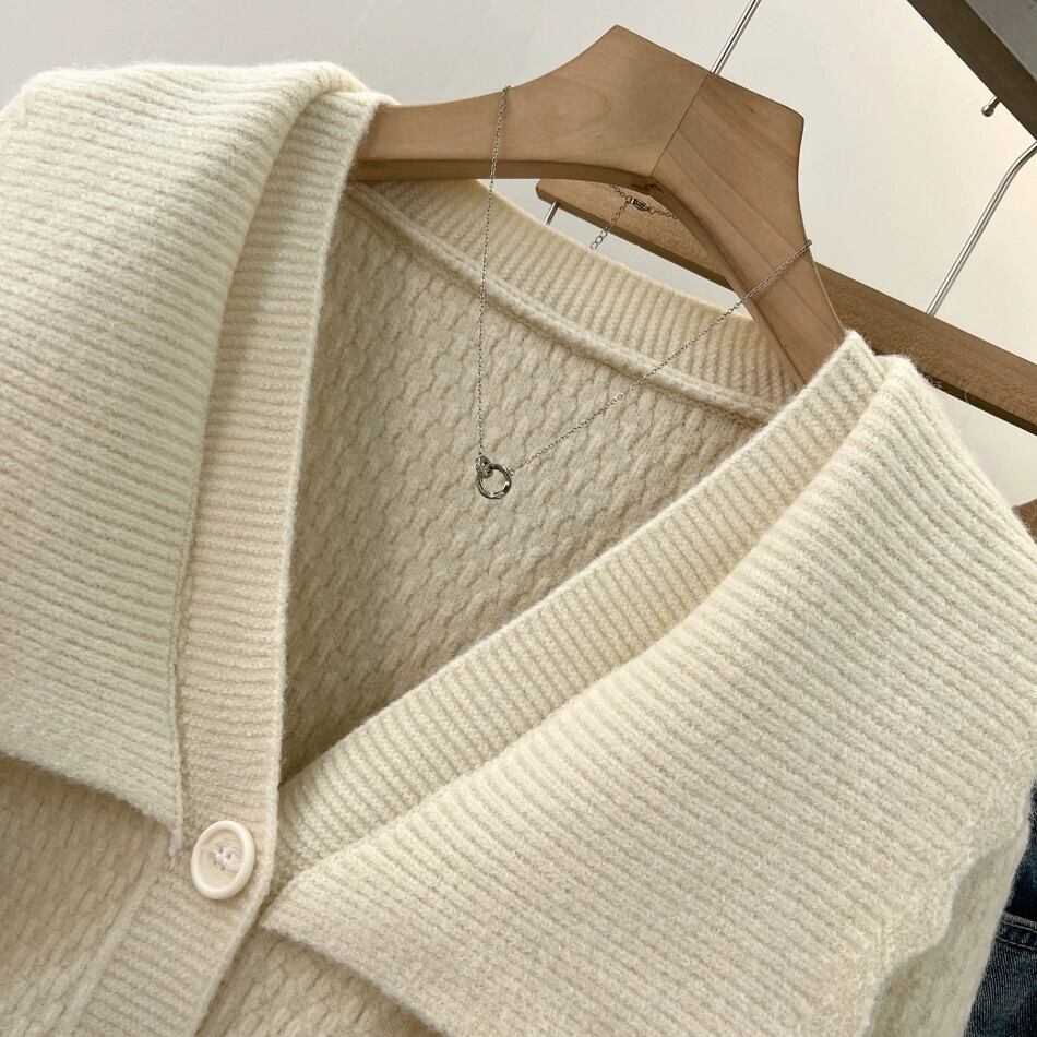 セーター女性プラスサイズ 2023 秋の新ファット mm ルーズデザイン V ネック長袖ニッチカーディガンセータートレンド ロング 大きめサイズ オータム 秋物 Vネック 8884173264998879