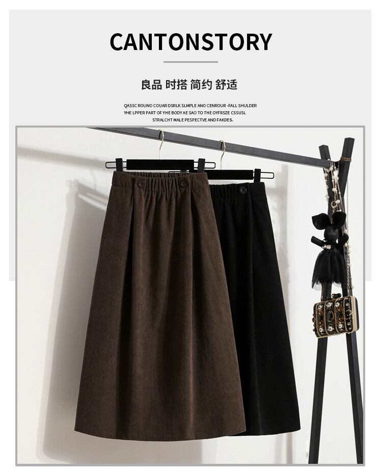 大きいサイズの腹をカバーするレトロなコーデュロイスカートの女性の秋と冬の脂肪ミリメートル弾性ウエスト痩身ミッドレングスaラインアンブレラスカート エラスティック 伸縮 大きめサイズ オータム 秋物 ウィンター 冬物 8884126749071547