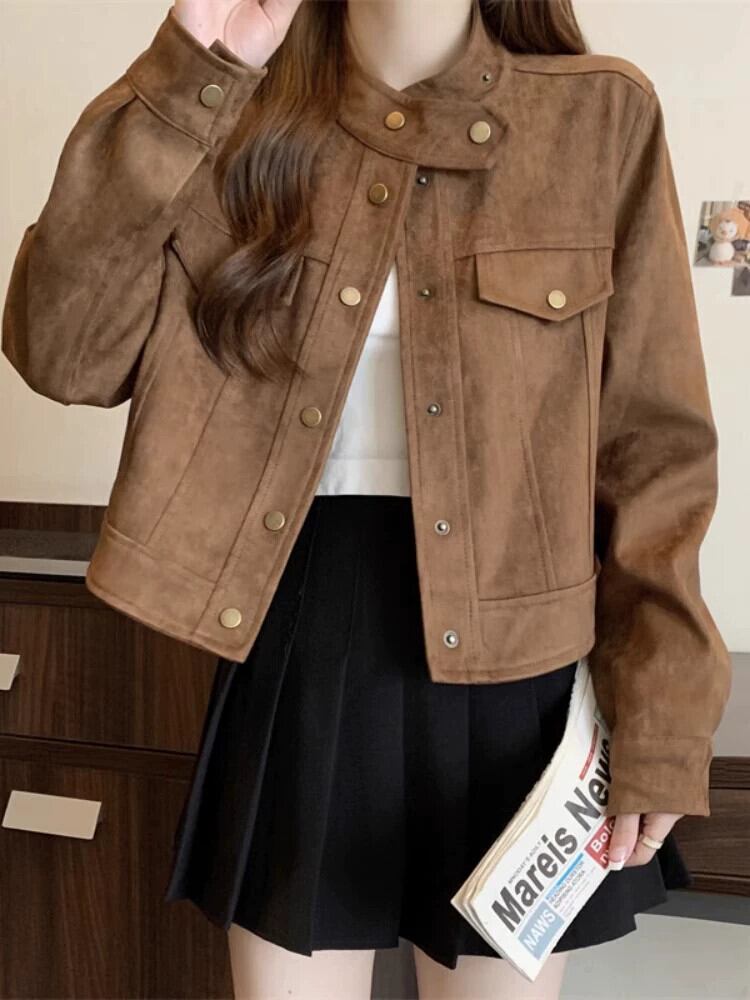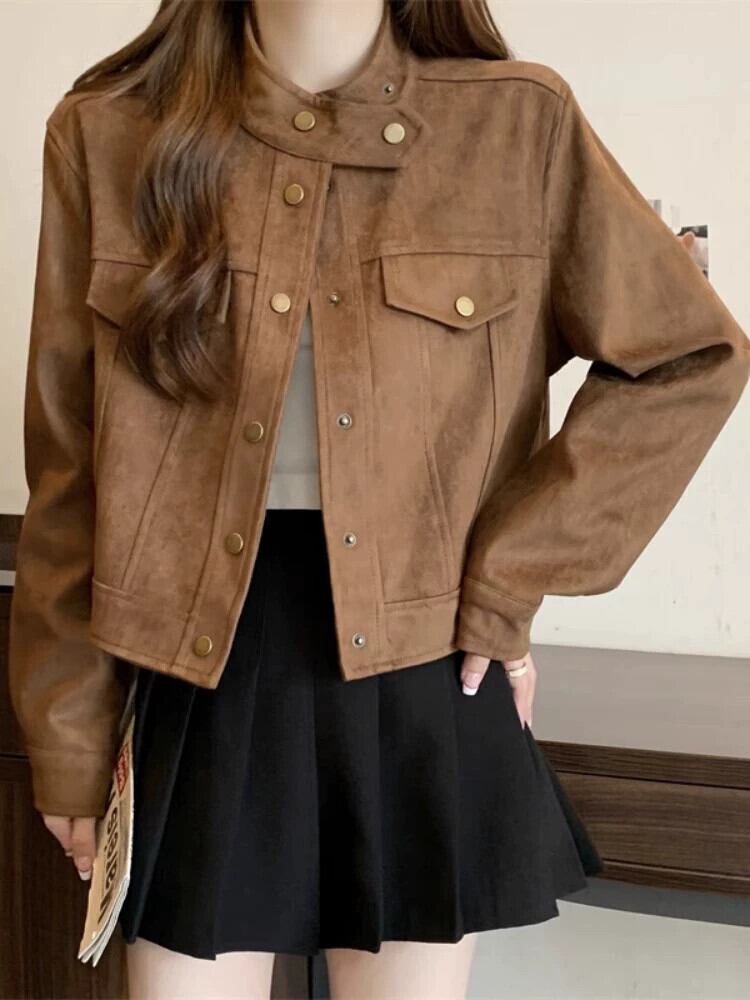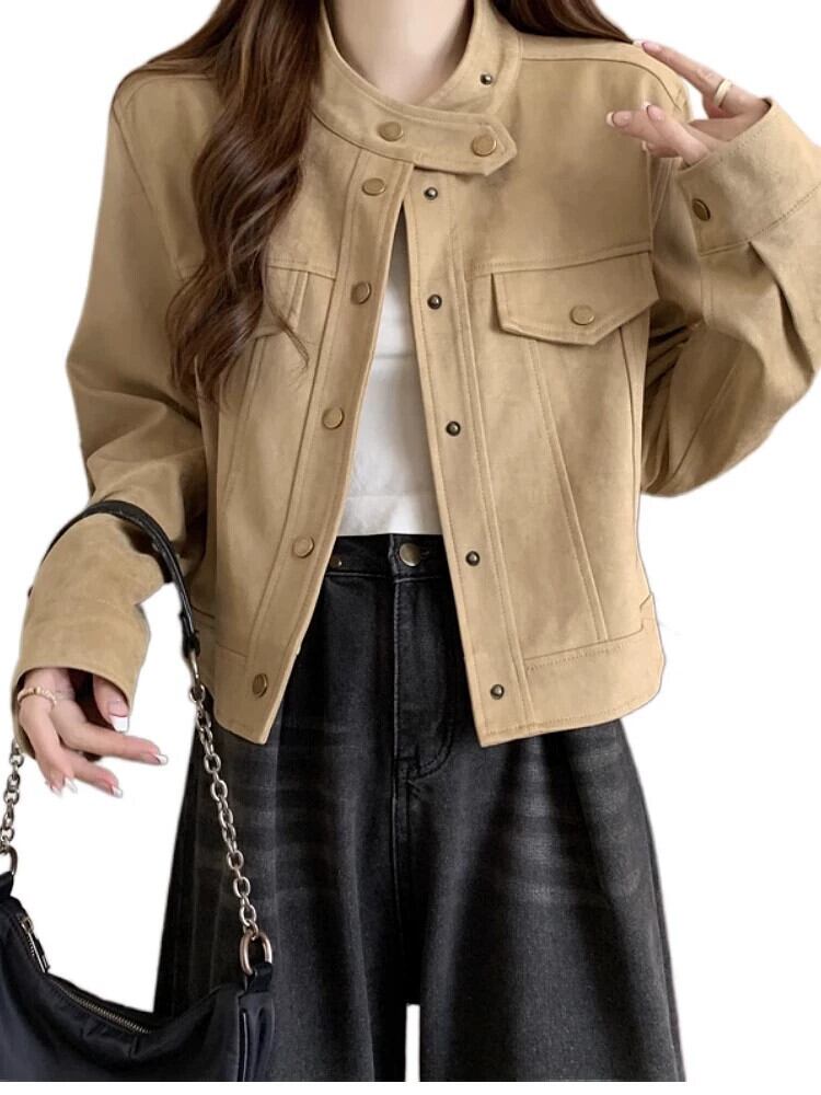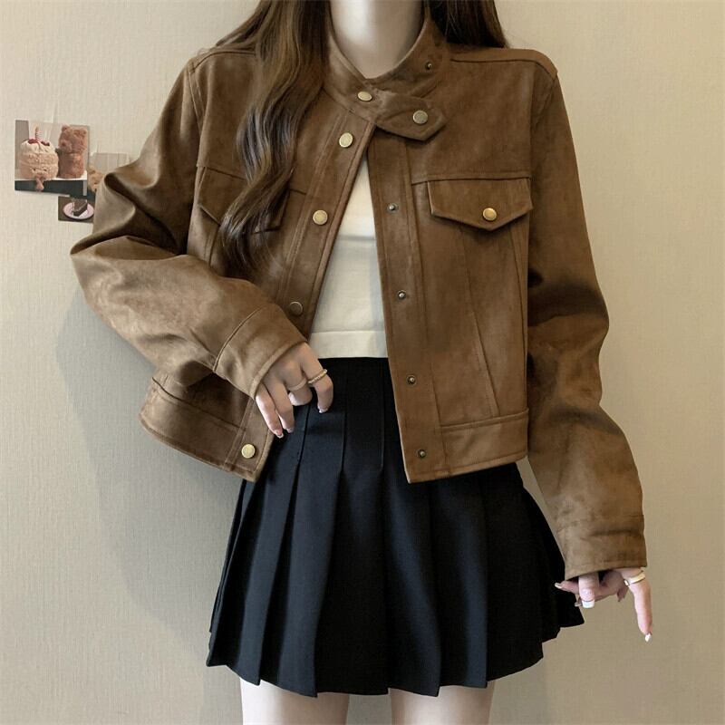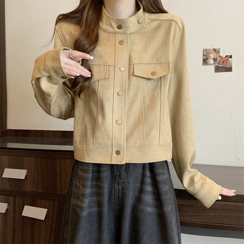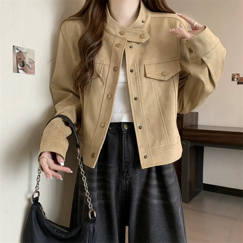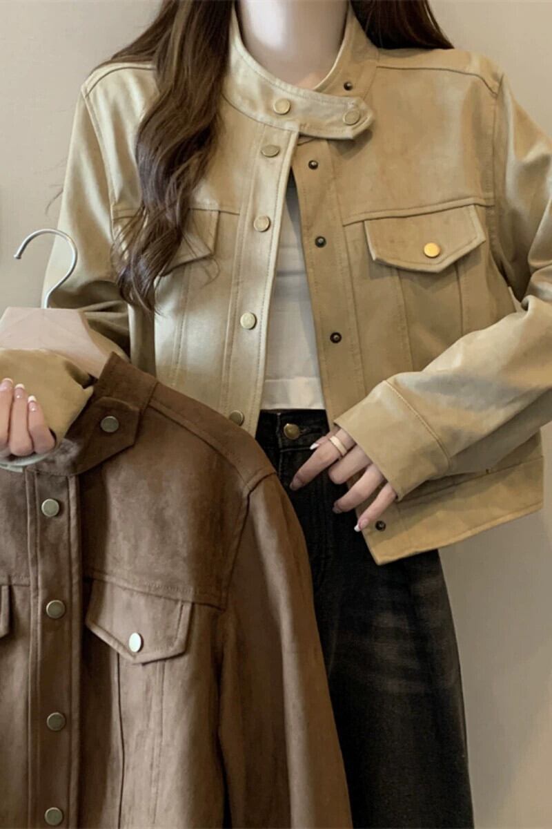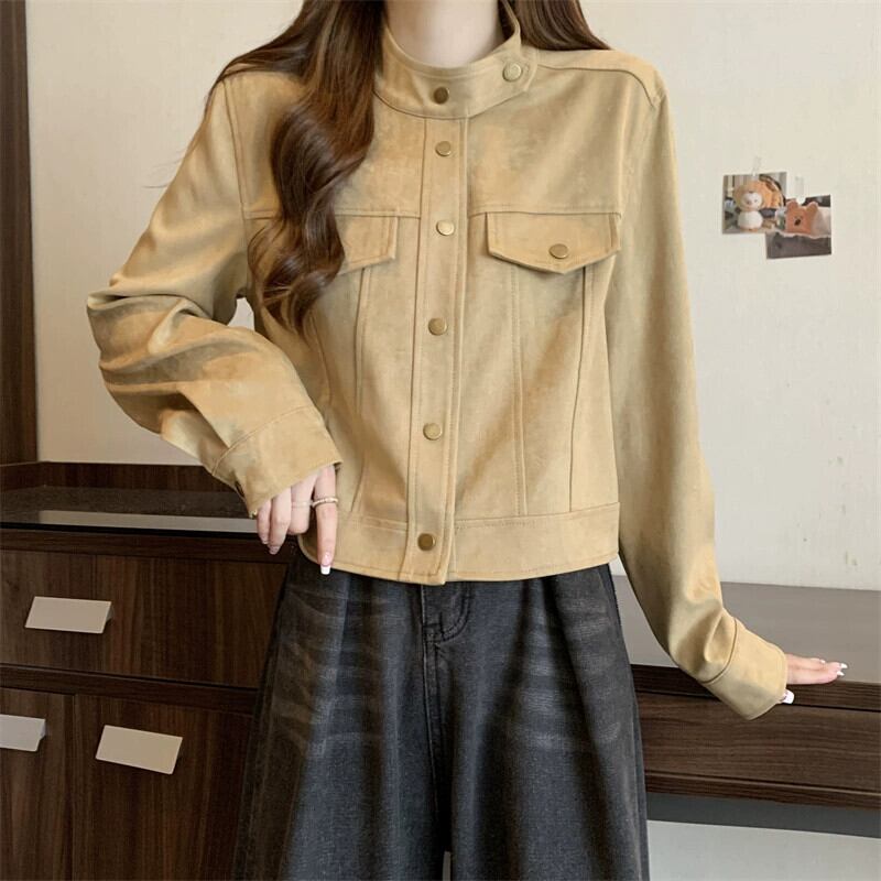 プラスサイズの女性の秋と冬の新しいスタイルのデザインバックスキンベルベットファットmmルーズでスリムな人気のショートジャケット 大きめサイズ オータム 秋物 ウィンター 冬物 8884113484897142