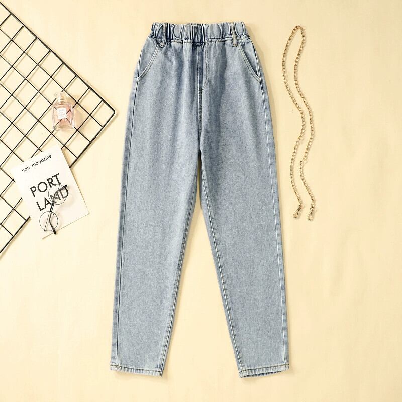 プラスサイズの秋冬 2023 新しい女性のカジュアルハイウエストジーンズファット mm 痩身多用途弾性ウエストハーレムパンツ エラスティック 伸縮 大きめサイズ オータム 秋物 ウィンター 冬物 8884143402407876