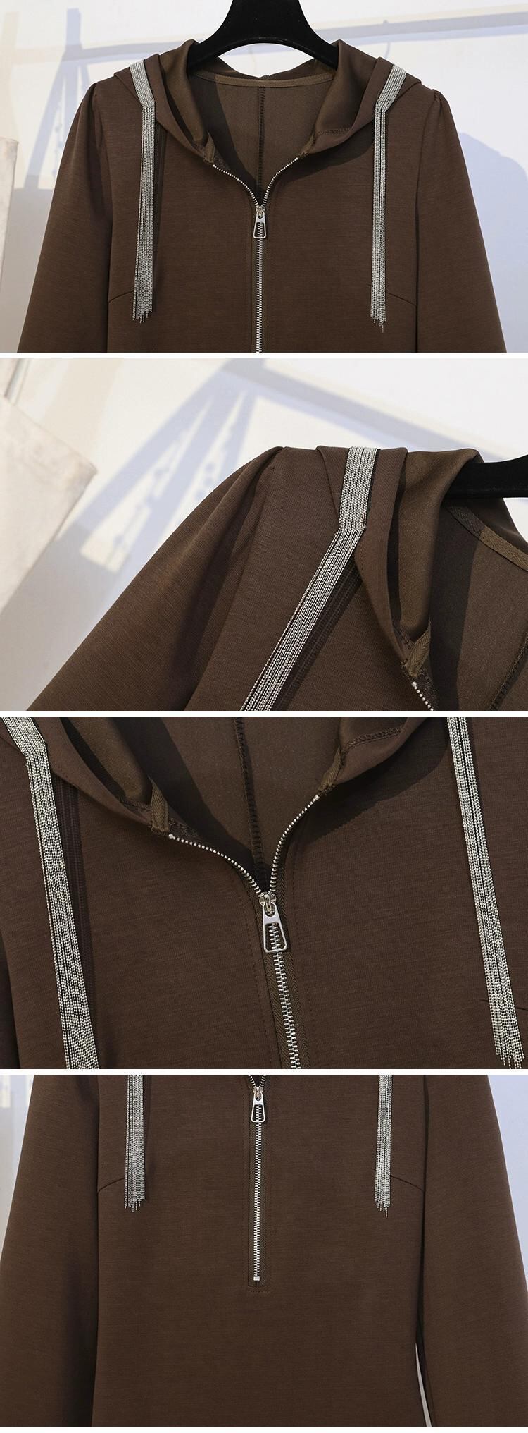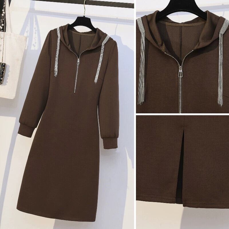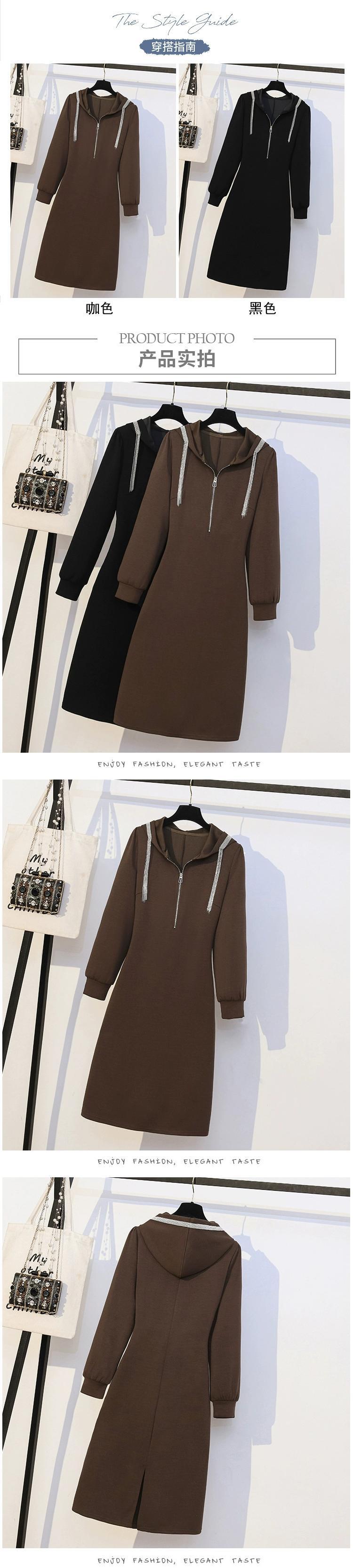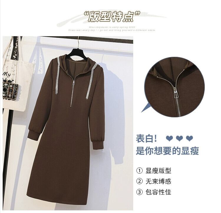 大きいサイズ 2023 秋と冬の新ファット MM ファッションカジュアルウエスト痩身ミッドレングスハーフジップフード付きドレス女性 大きめサイズ オータム 秋物 ウィンター 冬物 8884191319185274