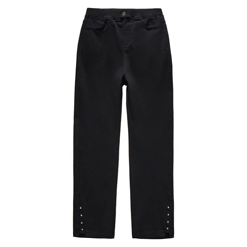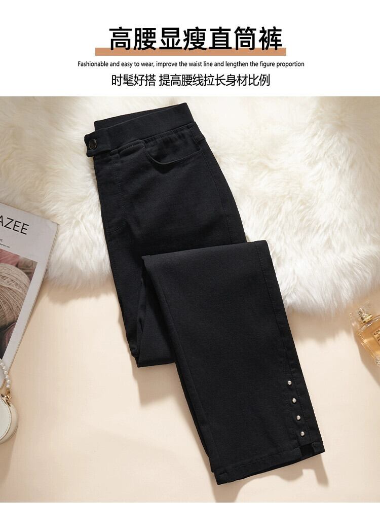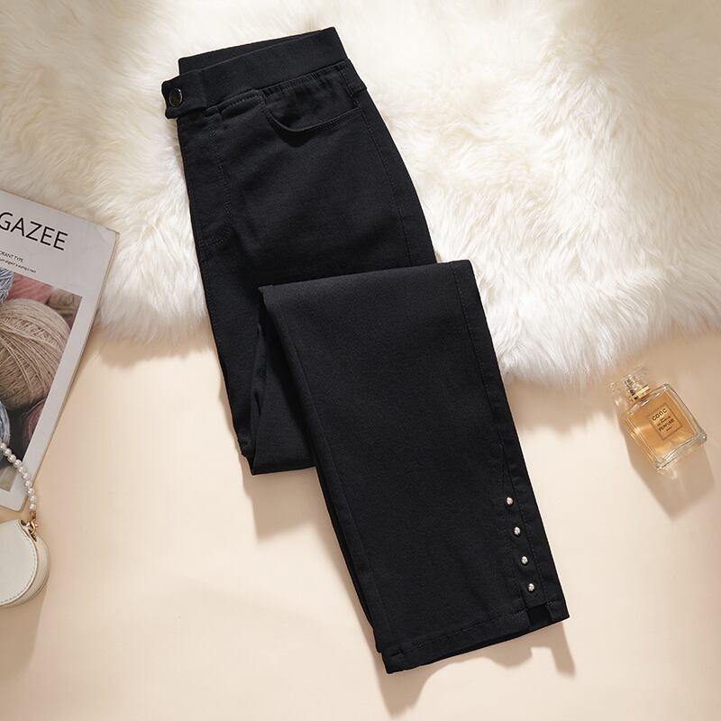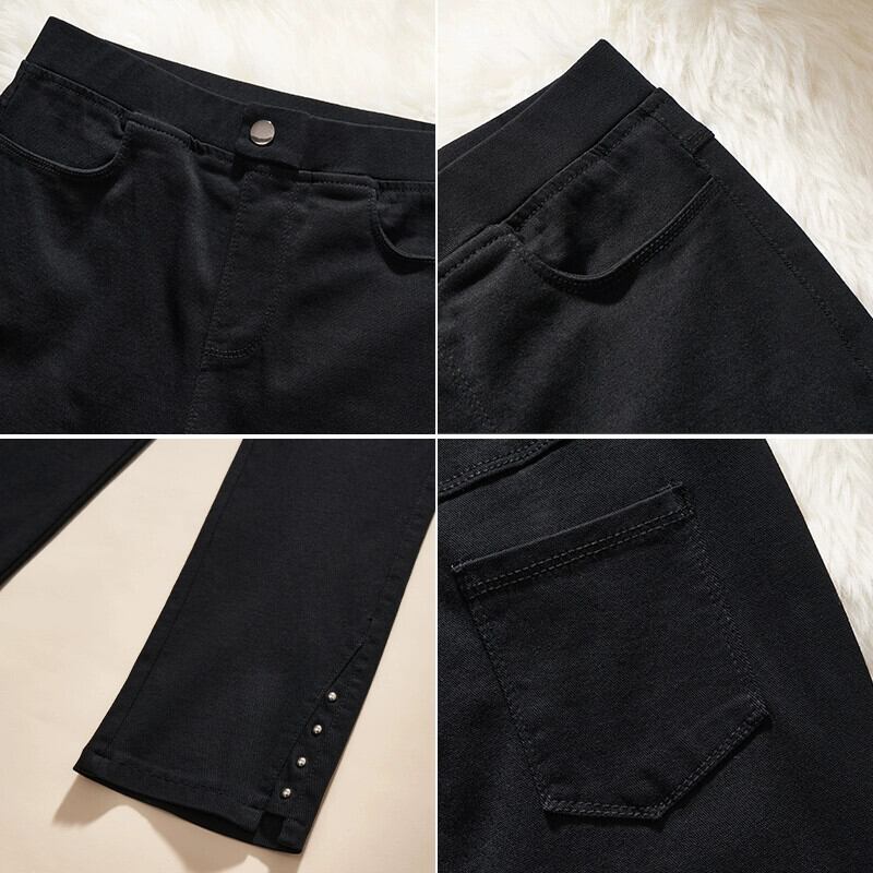 プラスサイズの女性の新しい秋冬 2023 脂肪 mm バージョン痩身ファッショナブルなハイウエスト黒リベット弾性シガレットパンツトレンディ ハイウェスト ブラック エラスティック 伸縮 大きめサイズ オータム 秋物 ウィンター 冬物 8884177369189124