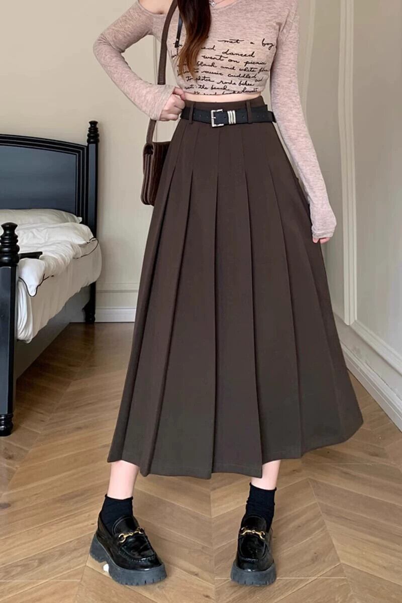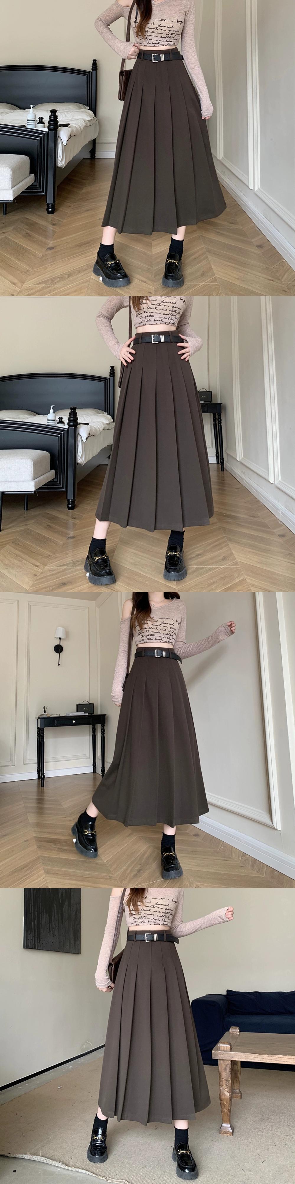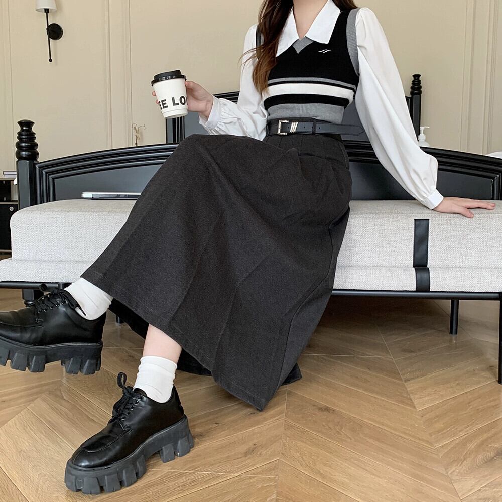 プラスサイズの秋の新しい女性のファット MM バージョン無地多用途ハイウエストスリムミドルレングスウールプリーツスカート 大きめサイズ オータム 秋物 ソリッドカラー 8884111997494873