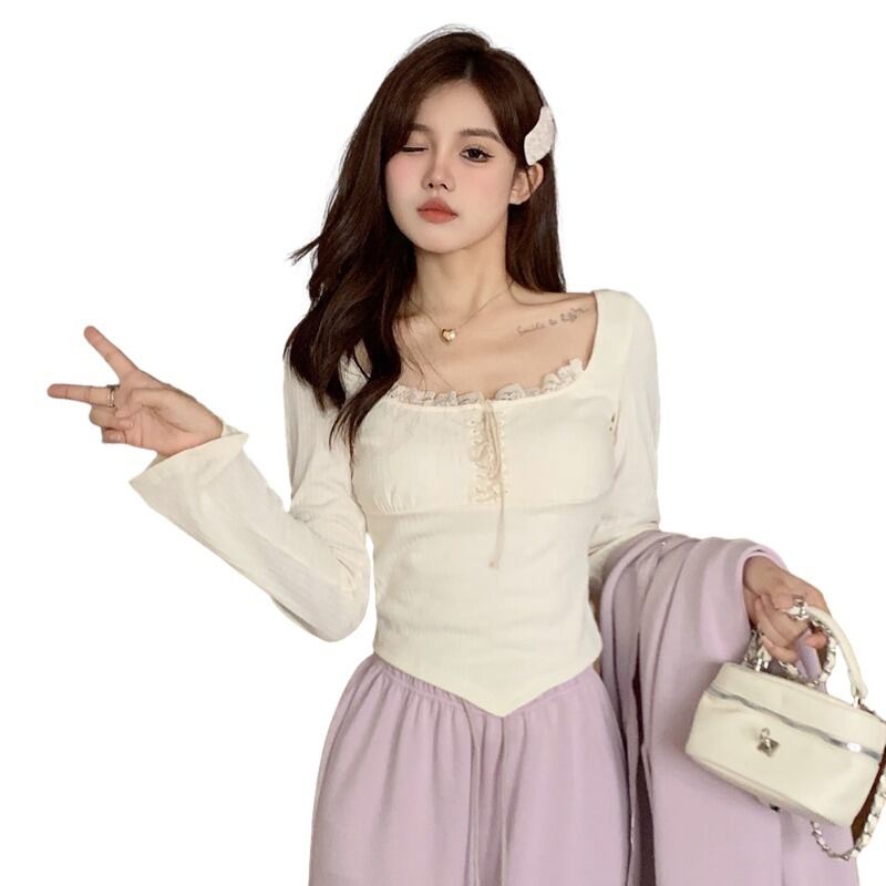 プラスサイズの婦人服ファット mm 秋の新 2023 長袖底年齢を減らす気質 T シャツニッチインナーウェアトップ ロング 大きめサイズ オータム 秋物 Tシャツ 8884186596542311