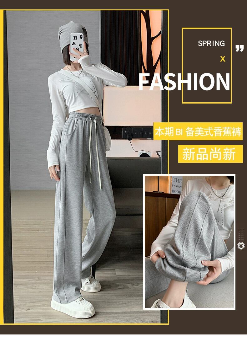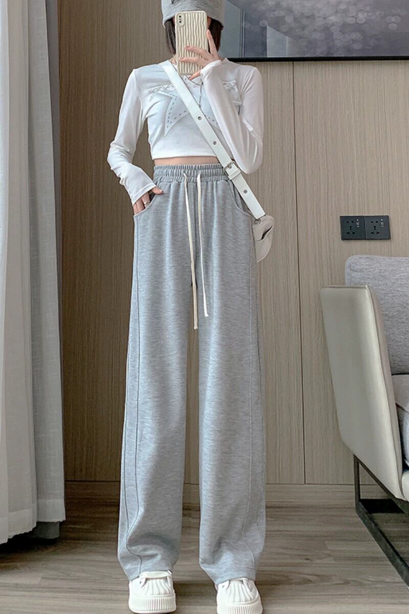 大きいサイズグレースウェットパンツ女性の秋 2023 脂肪ミリメートルハイウエストドレープルーズ痩身ストレートカジュアルワイドレッグスウェットパンツ ハイウェスト 大きめサイズ オータム 秋物 ワイドパンツ 8884135600601737