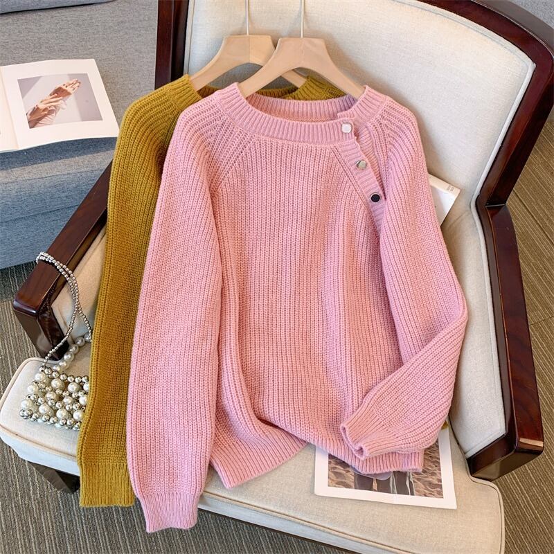 ニットセーター女性の大きいサイズ 2023 秋冬スタイルファットガールラウンドネックカバー肉と痩身長袖ニッチセーター ロング 大きめサイズ オータム 秋物 ウィンター 冬物 Oネック 8884112720669363