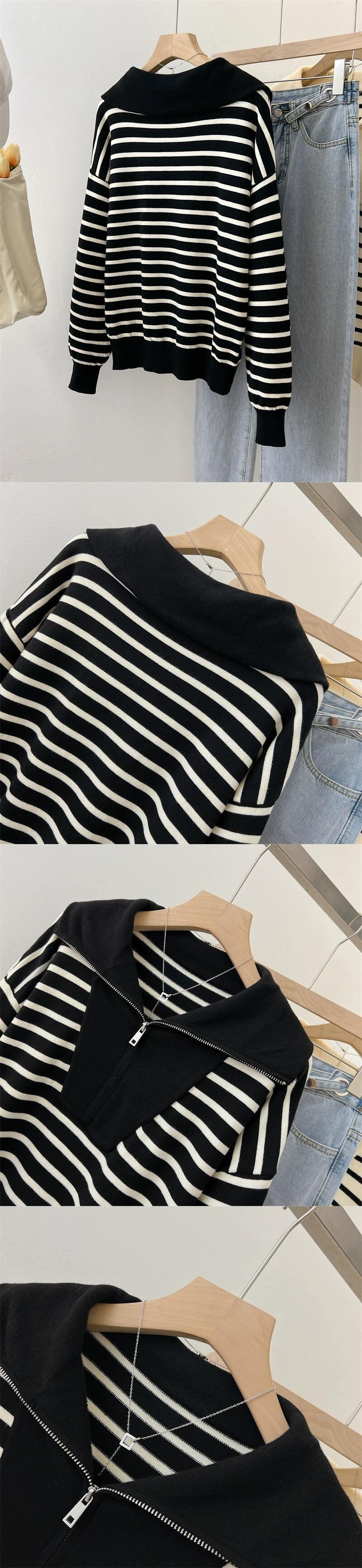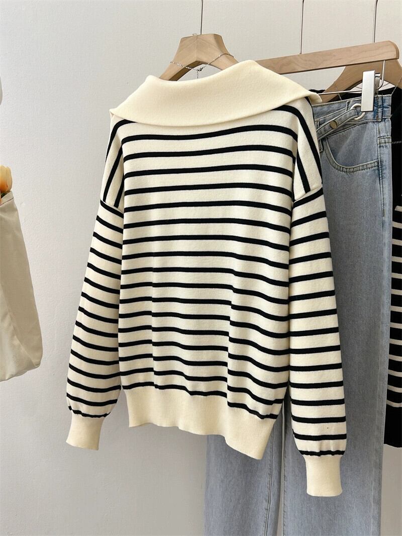 プラスサイズの女性の少し太い mm セーター女性の 2023 秋と冬の新しいストライプスリムネイビーカラールーズ長袖セーター ロング 大きめサイズ オータム 秋物 ウィンター 冬物 8884127169992766