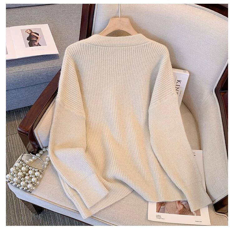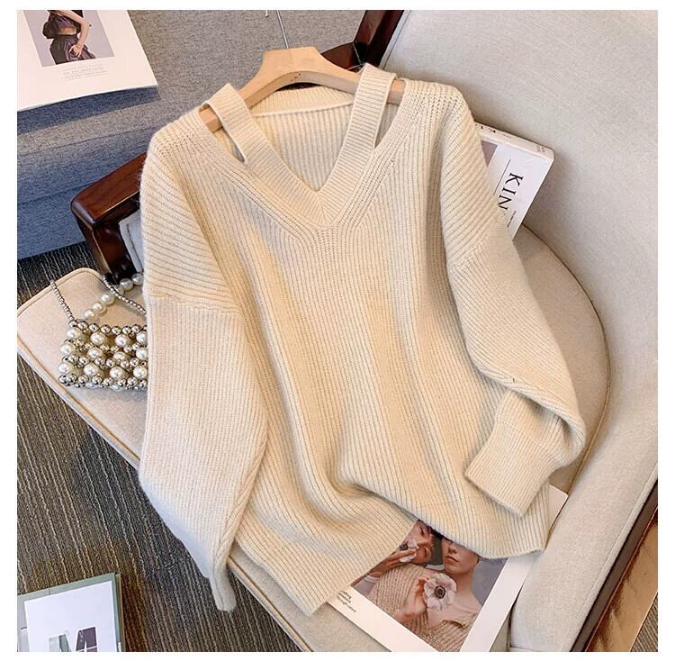 プラスサイズの女性のニットウェア女性の 2023 秋の新しい V ネック中空長袖脂肪 mm ルーズ痩身セーター ロング 大きめサイズ オータム 秋物 Vネック 8884192180299575