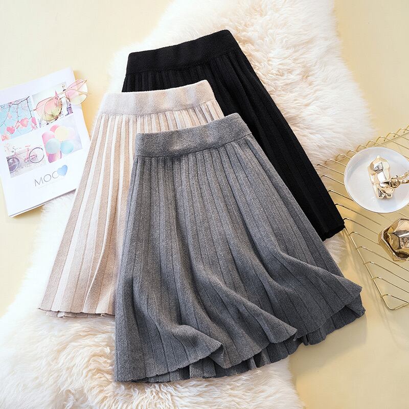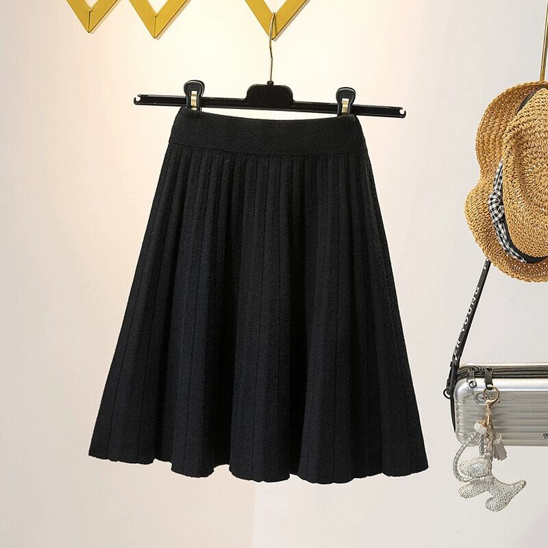 プラスサイズの女性の 2023 秋と冬の新しいハイウエストスリムニットプリーツスカート脂肪ミリメートル腹カバー A ラインショートスカートトレンディな 大きめサイズ オータム 秋物 ウィンター 冬物 Aライン 8884141138172181