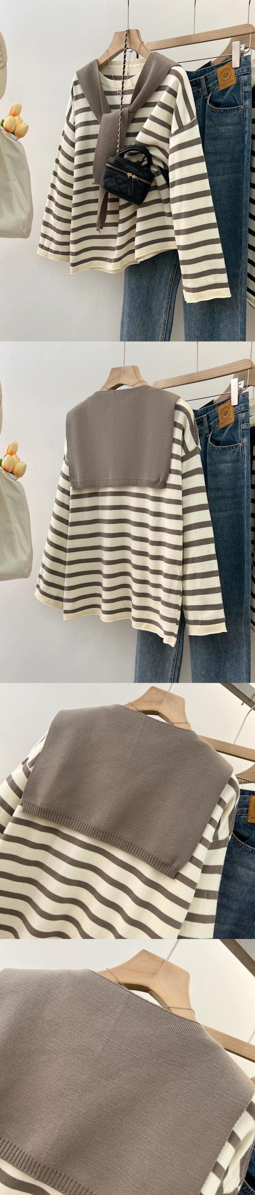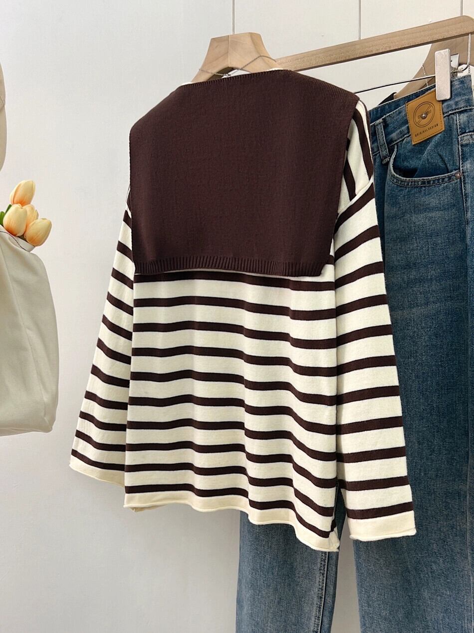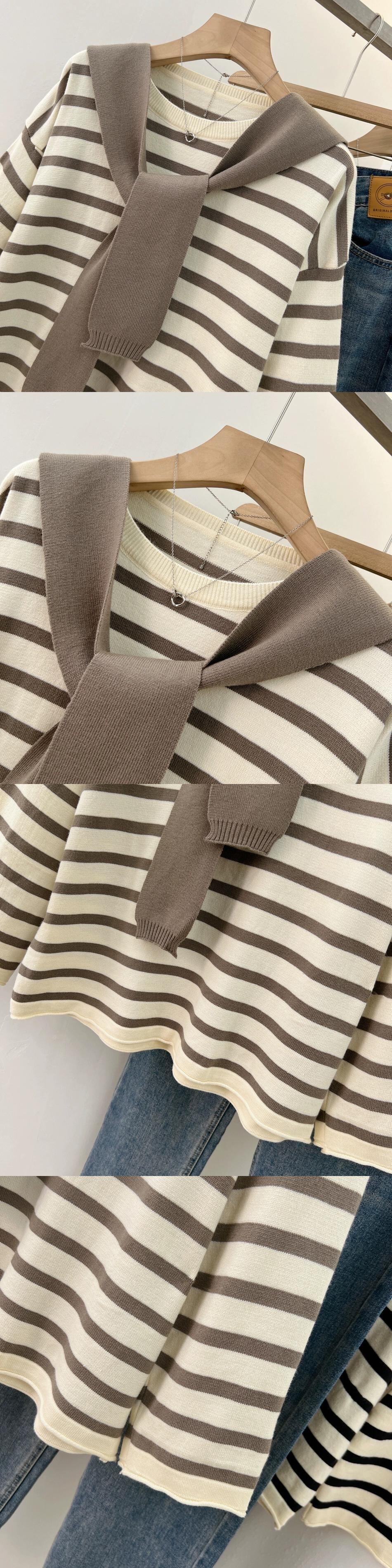 プラスサイズの女性の秋の新 2023 セーターショールストライプ長袖プルオーバールーズ痩身ボトミングシャツトップ ロング 大きめサイズ オータム 秋物 8884127902468964