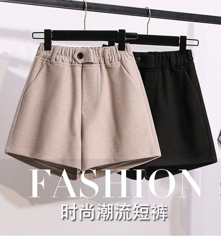 女性のカジュアルパンツプラスサイズ 2023 秋冬新スタイルファットニッチデザイン弾性ウエスト無地ワイドレッグショーツトレンディな エラスティック 伸縮 大きめサイズ オータム 秋物 ウィンター 冬物 ブルマー ワイドパンツ ソリッドカラー 8884184927913761