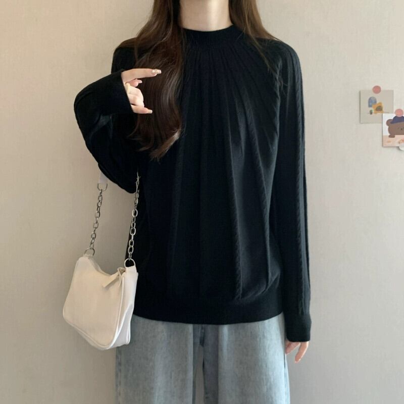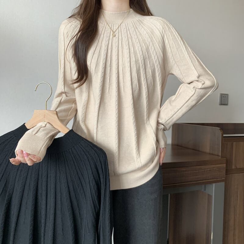 プラスサイズの女性の 2023 秋と冬の新しいフレンチハーフタートルネックニットセーター女性の多用途痩身長袖ボトムシャツトレンディ ロング 大きめサイズ オータム 秋物 ウィンター 冬物 8884165268239979