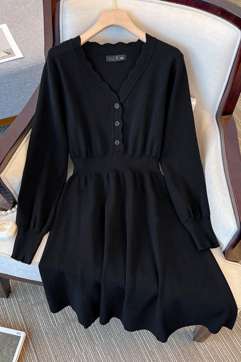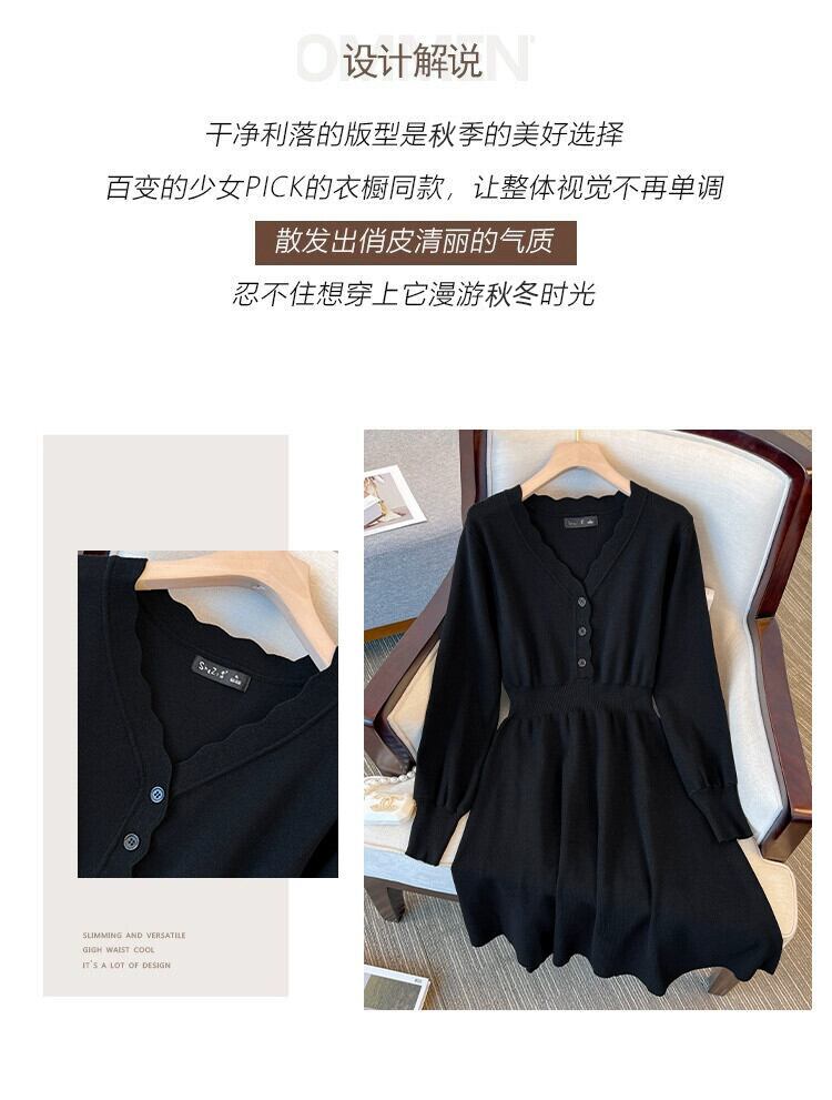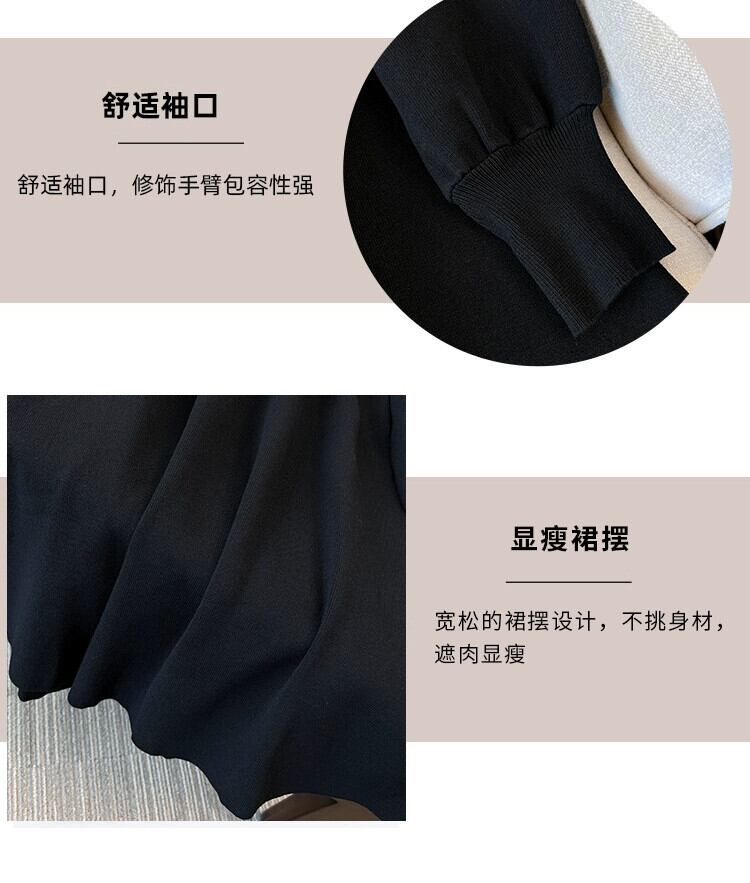 プラスサイズの女性の 2023 新しい秋のスカートわずかに太い mm ミッドレングススリム黒底ニットセータードレス ブラック 大きめサイズ オータム 秋物 8884132613836202