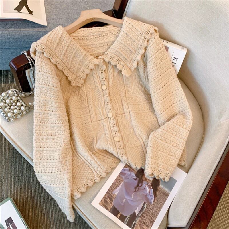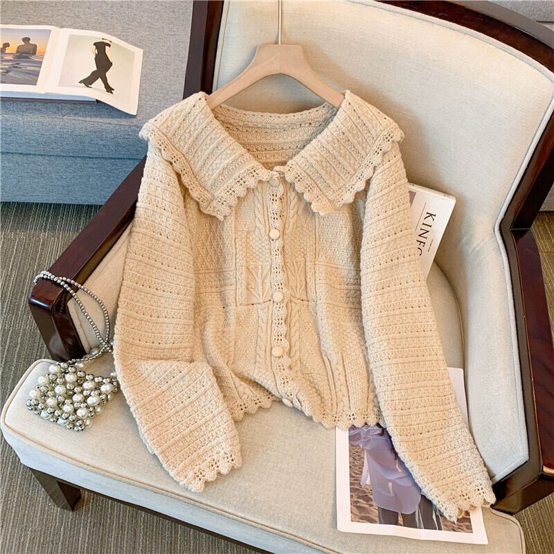 2023 新しい秋と冬のプラスサイズの女性のスリムセータートップス人形の襟ハイエンド脂肪ミリメートルニットカーディガンジャケット 大きめサイズ オータム 秋物 ウィンター 冬物 8884114500376588