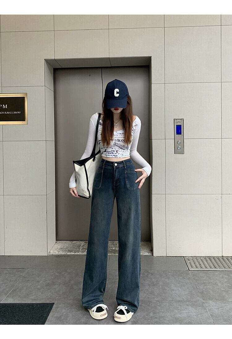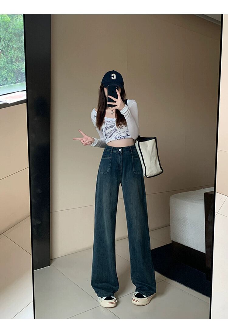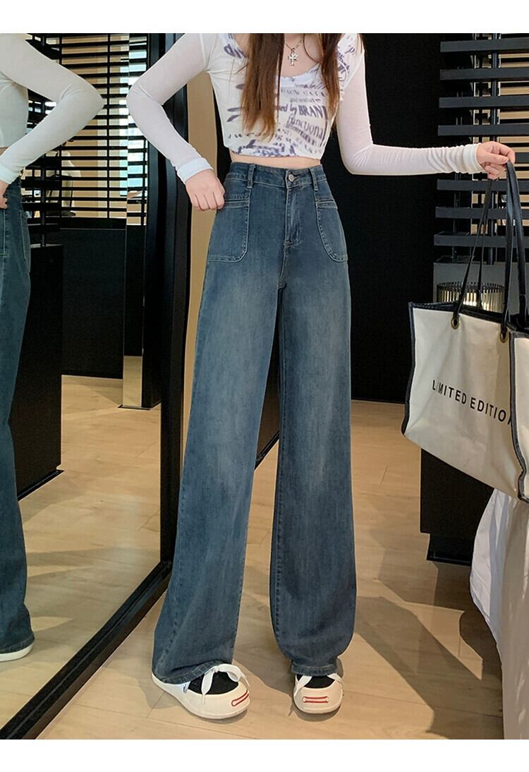 プラスサイズ 2023 秋の新しいナロー ワイドレッグ ジーンズ女性、太い mm、汎用性の高い痩身ハイウエスト フロアレングス パンツとトレンディなパンツを備えています。 大きめサイズ オータム 秋物 888416947149613