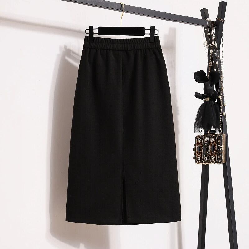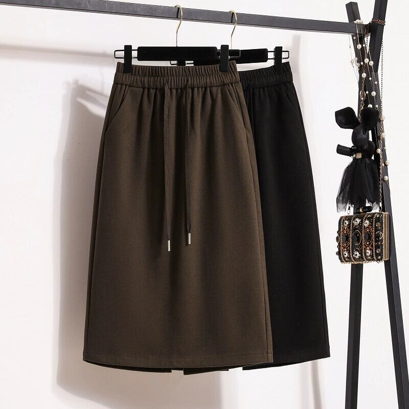 プラスサイズの秋と冬の女性の洋ナシ型スウェットシャツスカートミドル丈スカート脂肪mmファッション痩身Aラインスリットストレートスカート 大きめサイズ オータム 秋物 ウィンター 冬物 8884178438463978