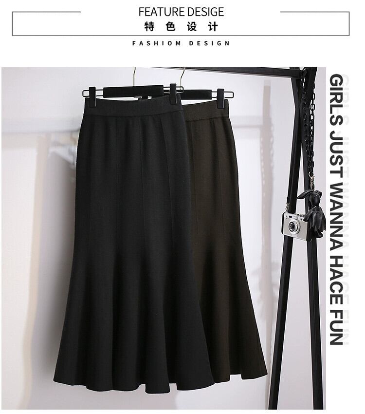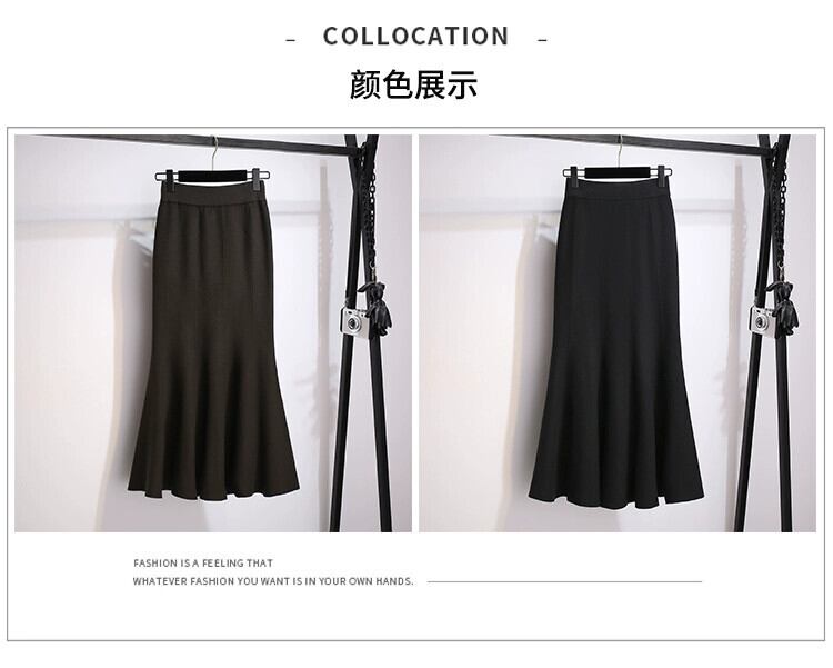 スカート女性プラスサイズ秋の新スタイル脂肪 mm 痩身と年齢軽減西洋スタイルソリッドカラーファッション多用途ニットフィッシュテールスカートトレンディ 大きめサイズ オータム 秋物 8884171552900478