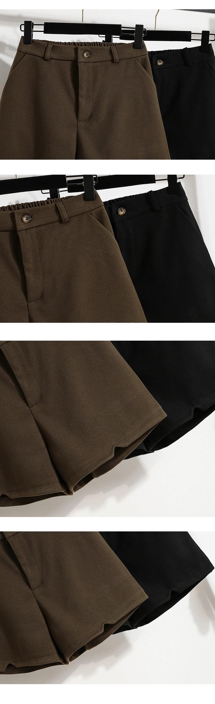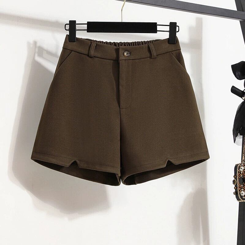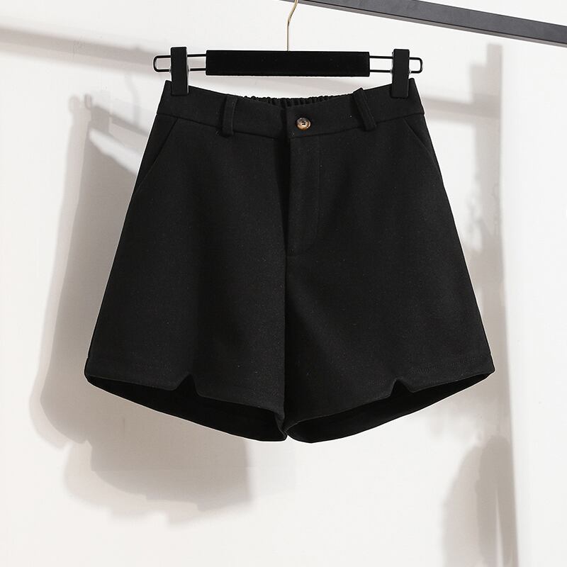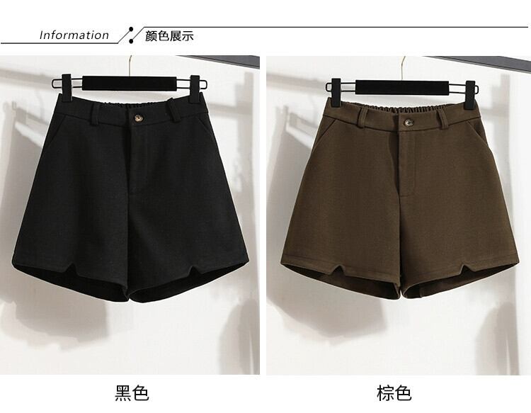 大きいサイズ 2023 秋ソリッドカラーウールショートパンツ女性ファット MM ハイウエストファッショナブルな年齢削減痩身ワイドレッグ A ラインブーツパンツトレンディ ハイウェスト 大きめサイズ オータム 秋物 ショーツ ブルマー Aライン ワイドパンツ 8884114724865701