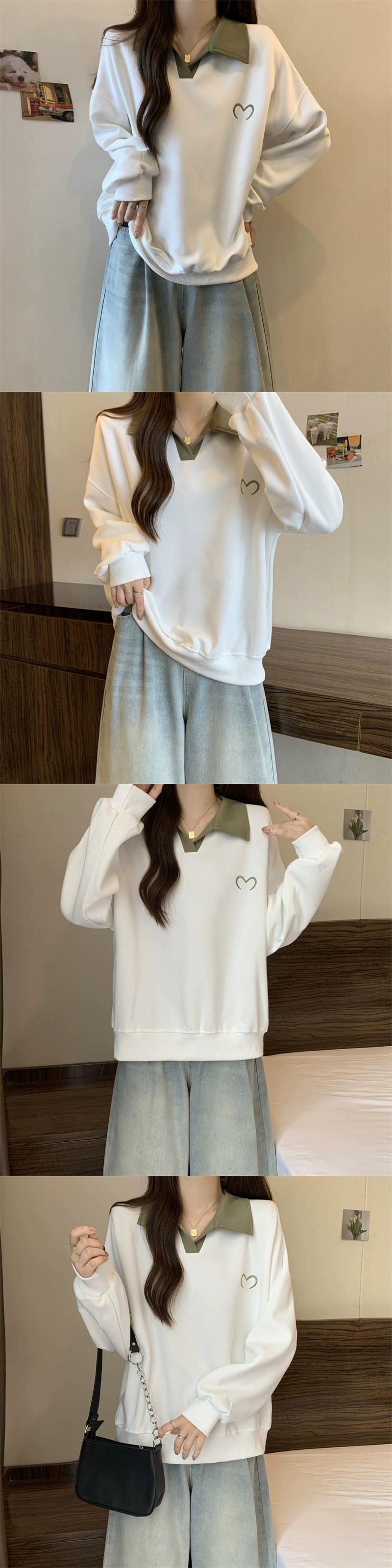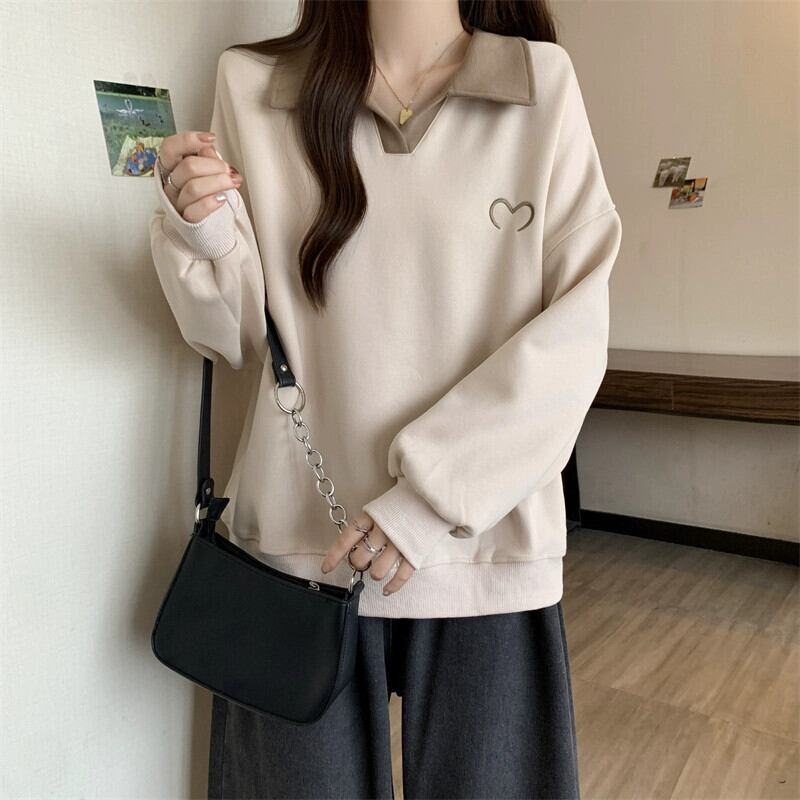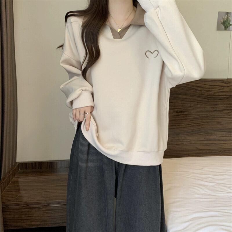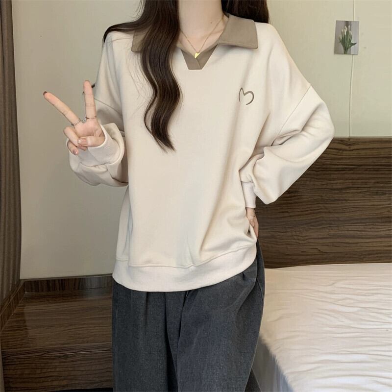 プラスサイズの秋の新しいスタイルの右肩ポロカラースウェットシャツ、ゆったりとしたデザインの太ったmmの女性、お腹をカバーし、スリムな長袖トップトレンディです ロング 大きめサイズ オータム 秋物 8884168415916006