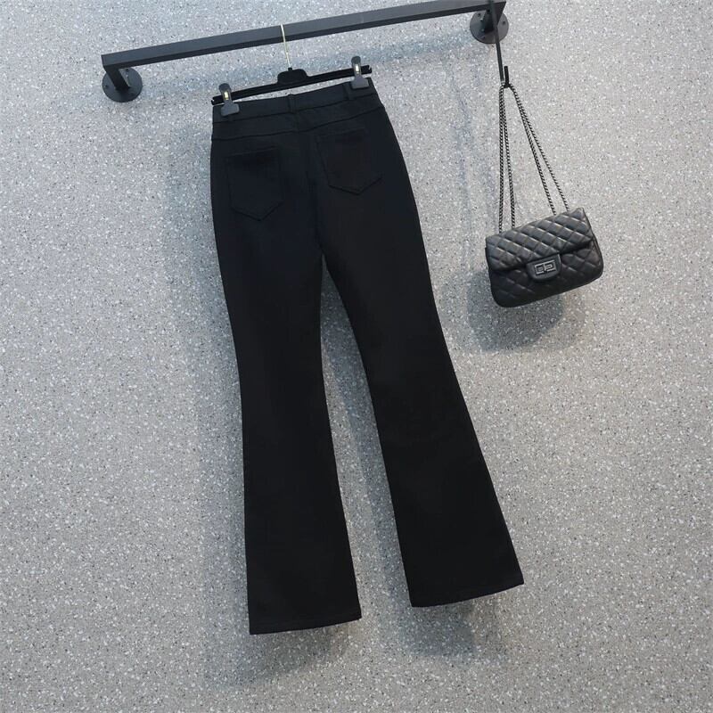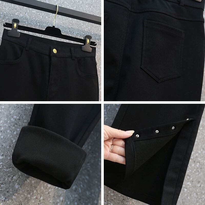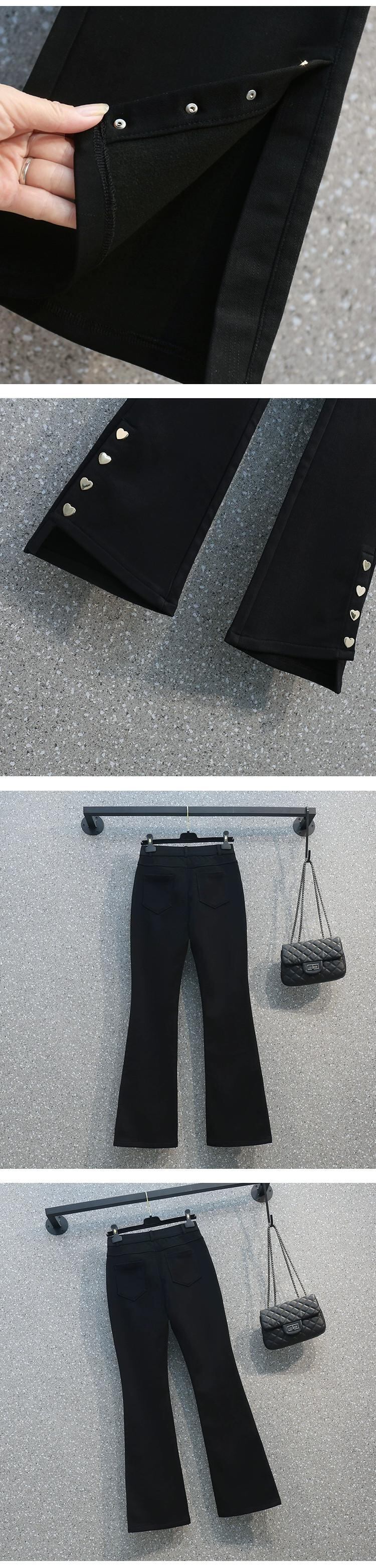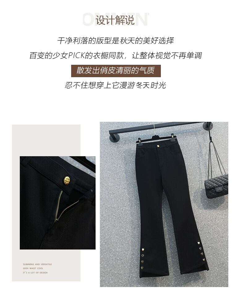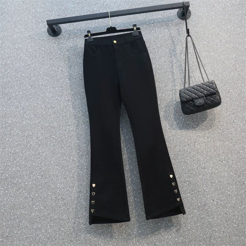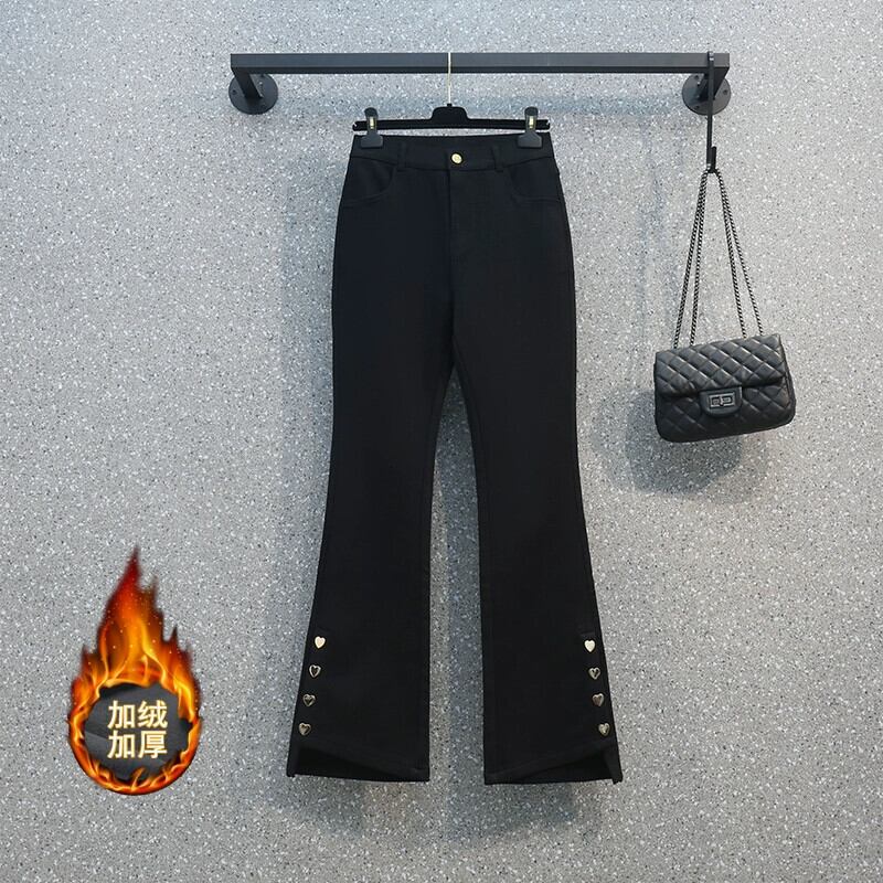 プラスサイズの女性の新しい冬のスタイル 2023 脂肪 mm プラスベルベットと厚みのあるスタイルスリットハイウエスト痩身わずかにフレアワイドレッグパンツトレンディ ハイウェスト レッド 大きめサイズ ウィンター 冬物 ワイドパンツ 8884119745222926