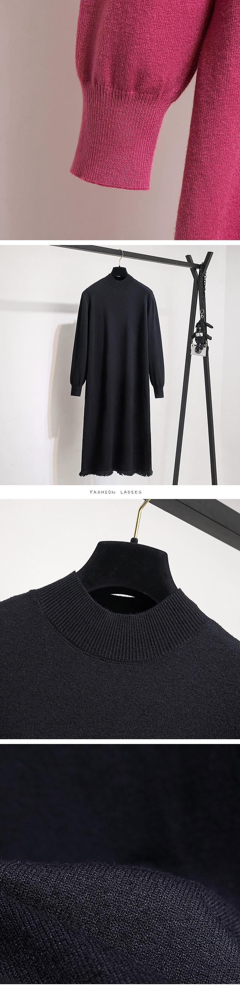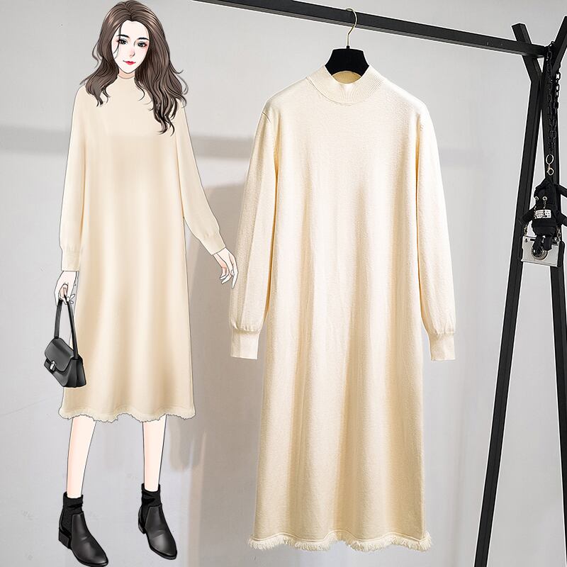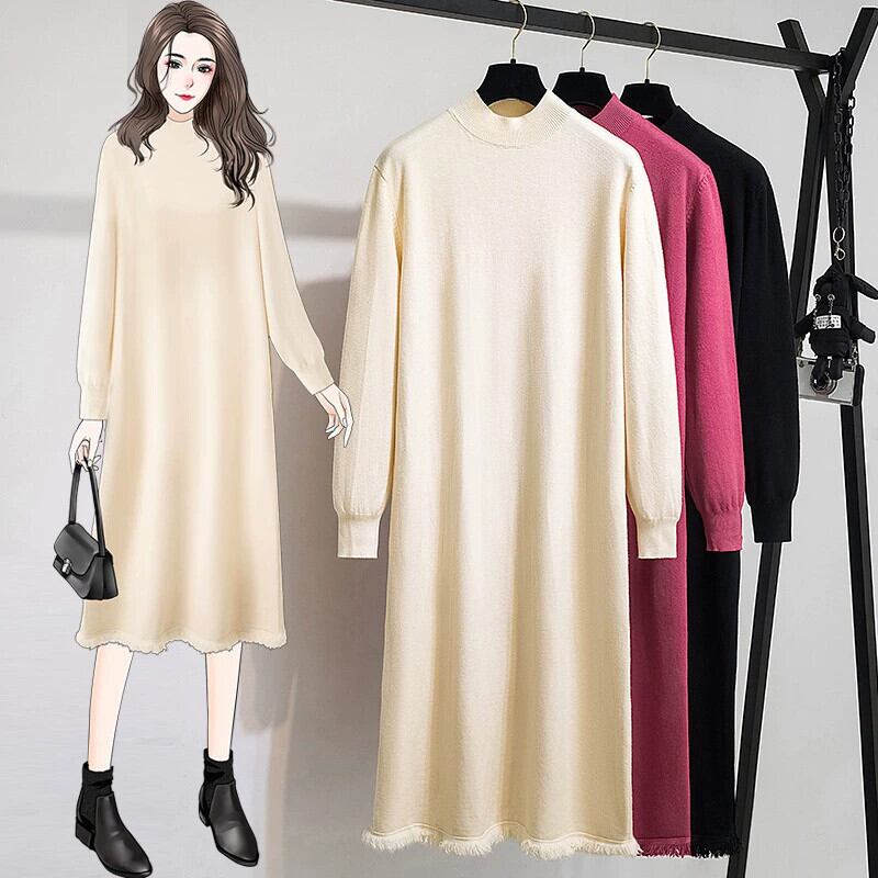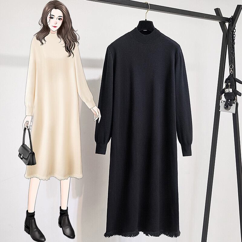 プラスサイズの婦人服 2023 秋と冬の新しいファット MM ファッションハーフタートルネック長袖セーターテルミッドレングスドレス ロング 大きめサイズ オータム 秋物 ウィンター 冬物 8884176869612666