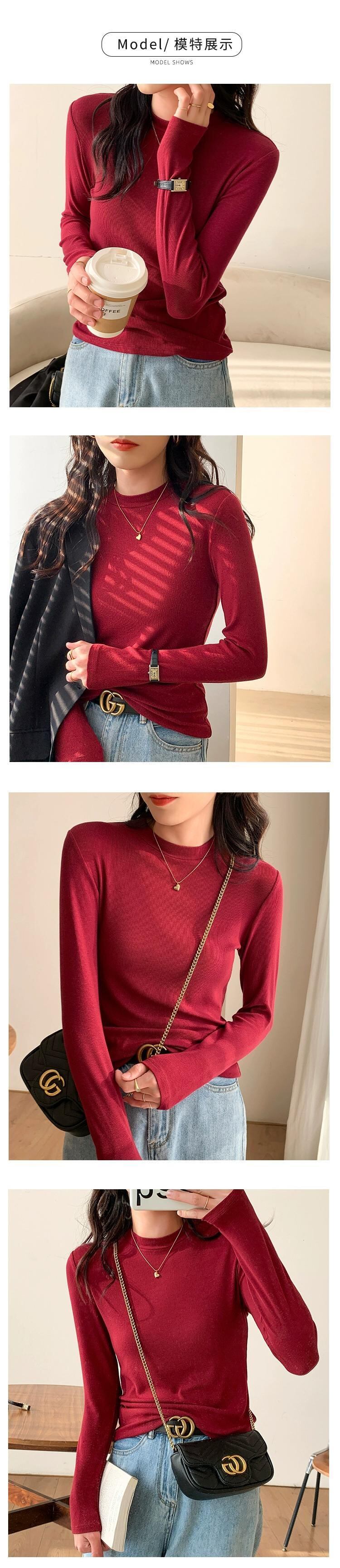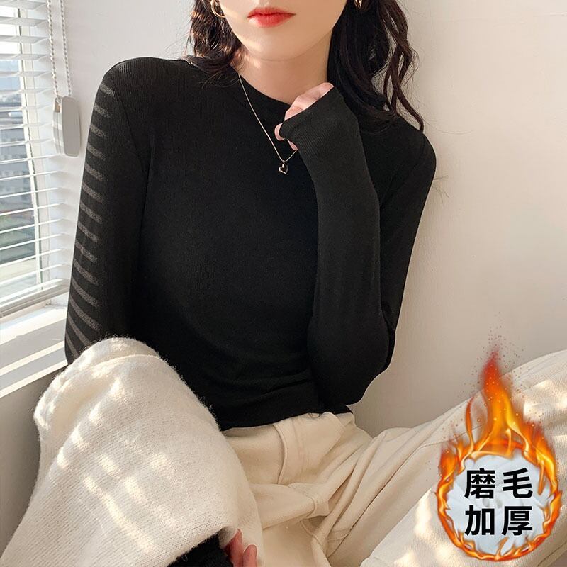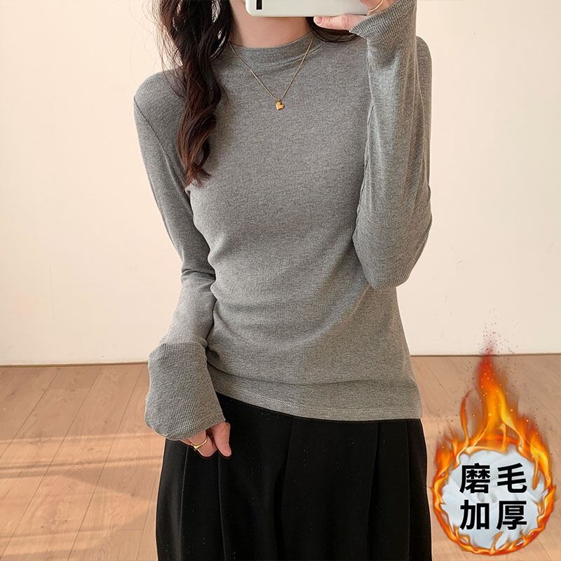 プラスサイズの女性のラウンドネックオールマッチ長袖ボトリングシャツ秋と冬の新しい脂肪 mm インナーウェア痩身アウタートップ ロング 大きめサイズ オータム 秋物 ウィンター 冬物 Oネック 888413022052885