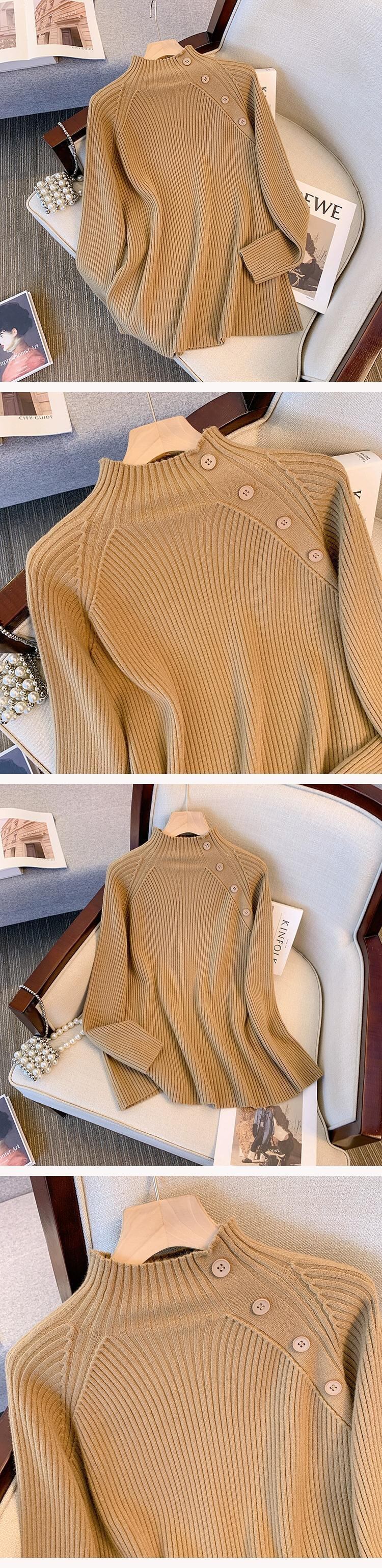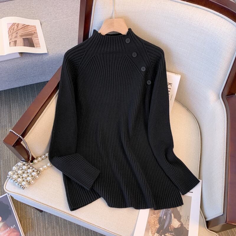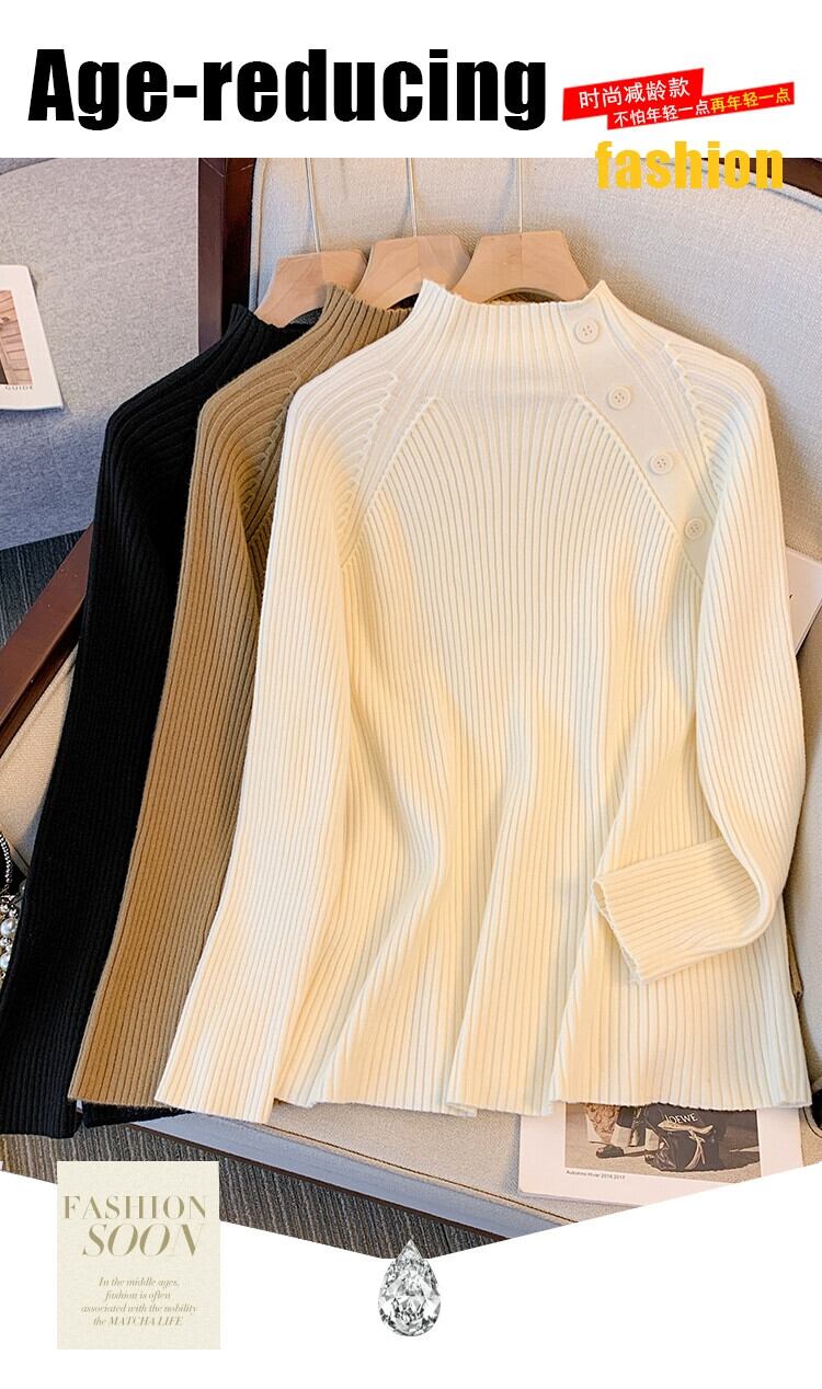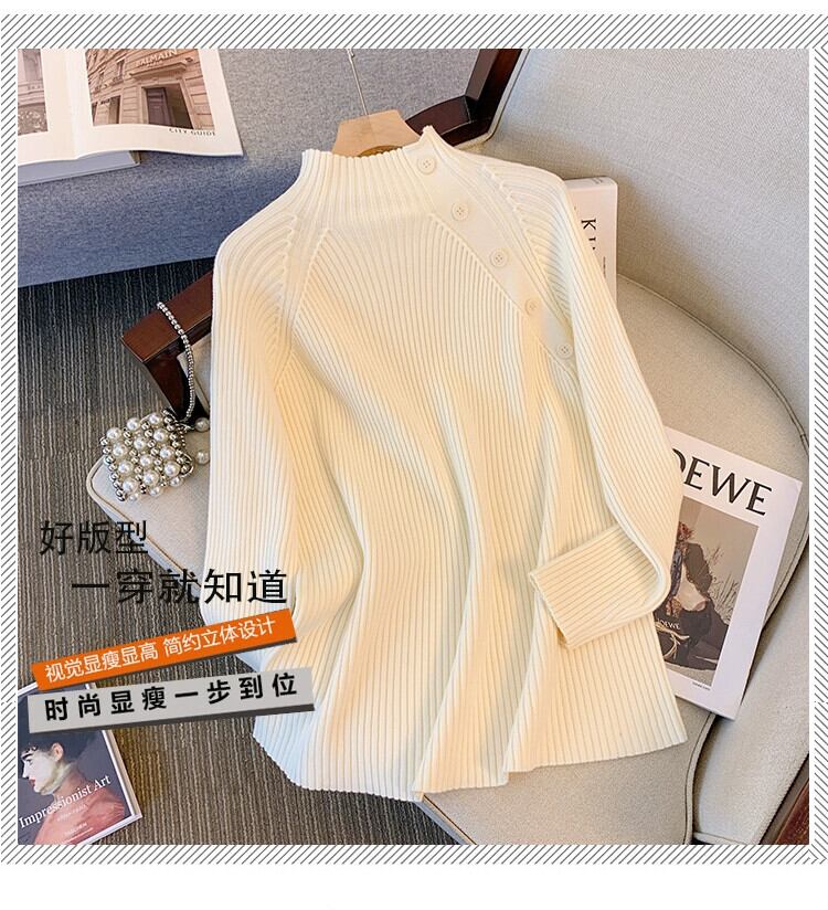 大きいサイズの女性のセーター女性の秋冬 2023 新しいファット mm ハーフタートルネックデザインルーズで汎用性の高いボトリングシャツセーター 大きめサイズ オータム 秋物 ウィンター 冬物 8884163029999754