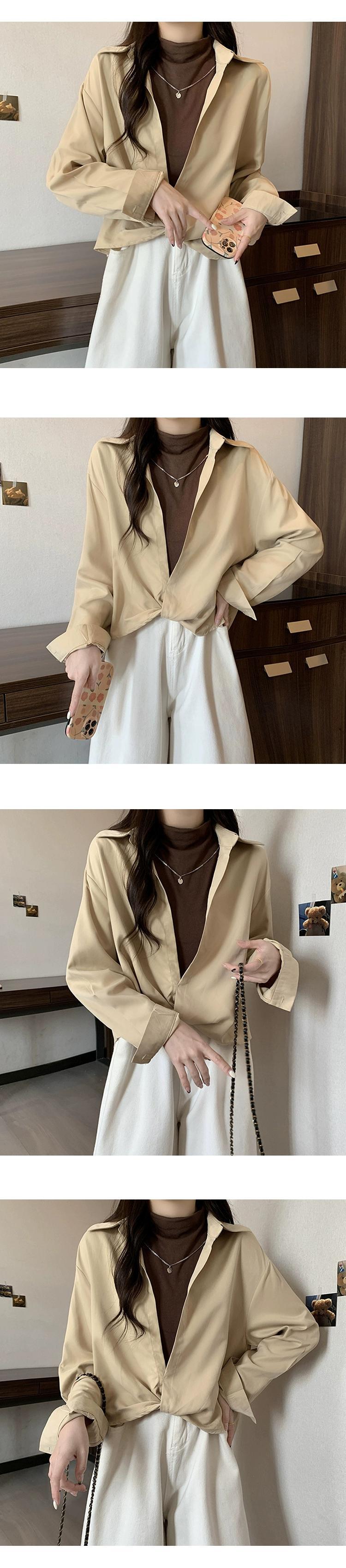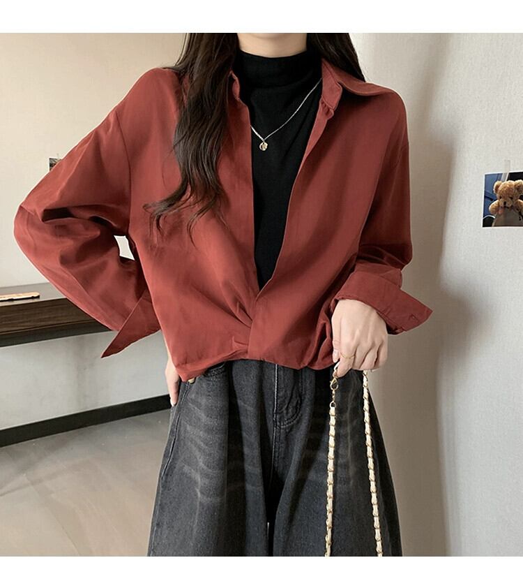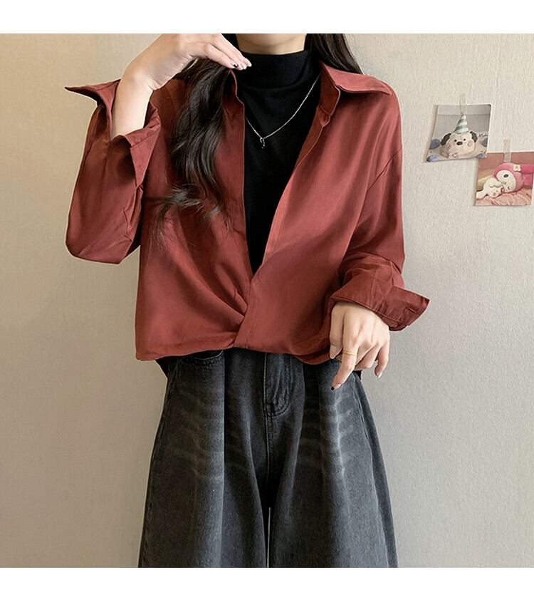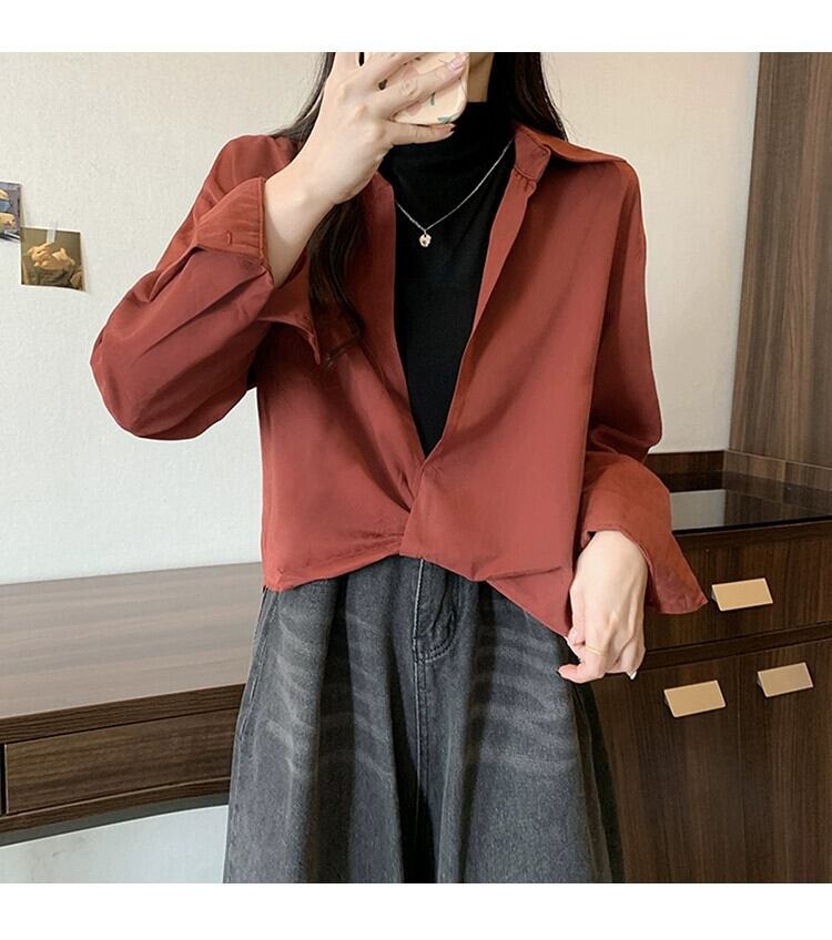 プラスサイズの秋の新ソリッドカラーステッチハーフハイカラーフェイクツーピースシャツファットMMデザインファッションルーズトップトレンディ 大きめサイズ オータム 秋物 8884137157050680