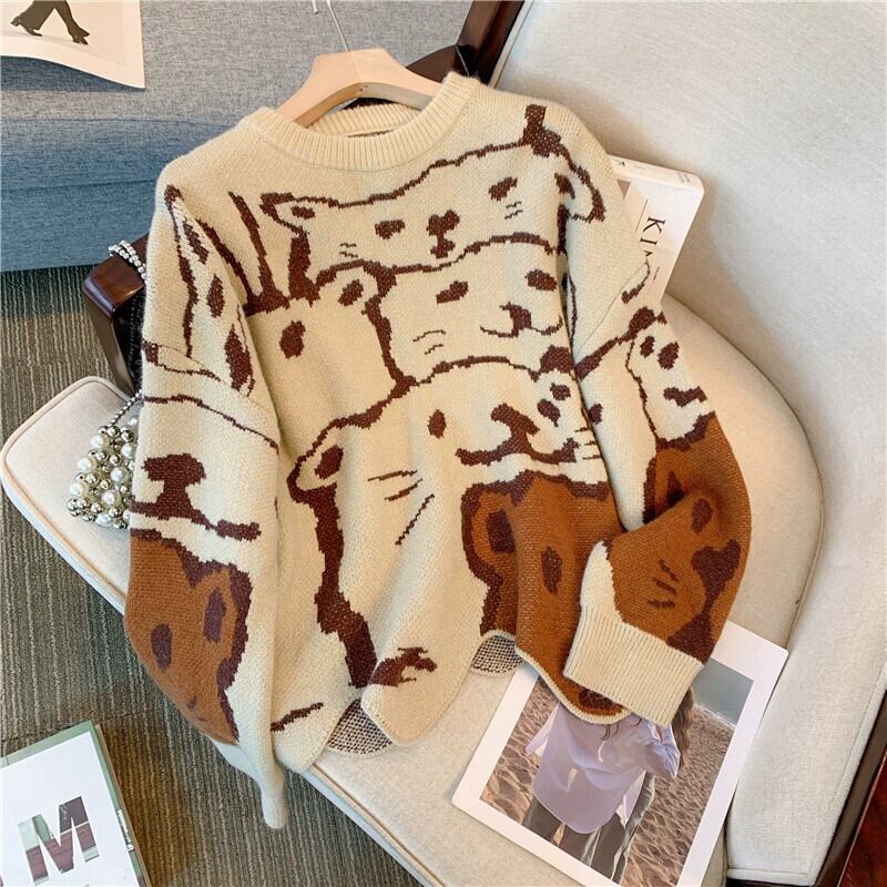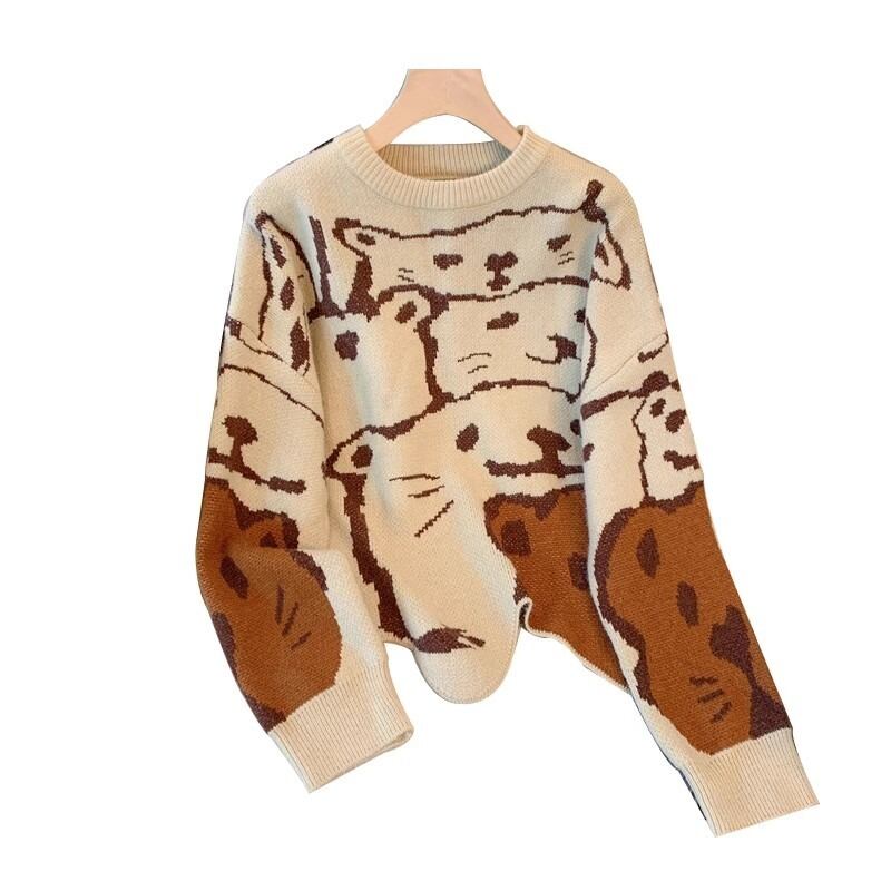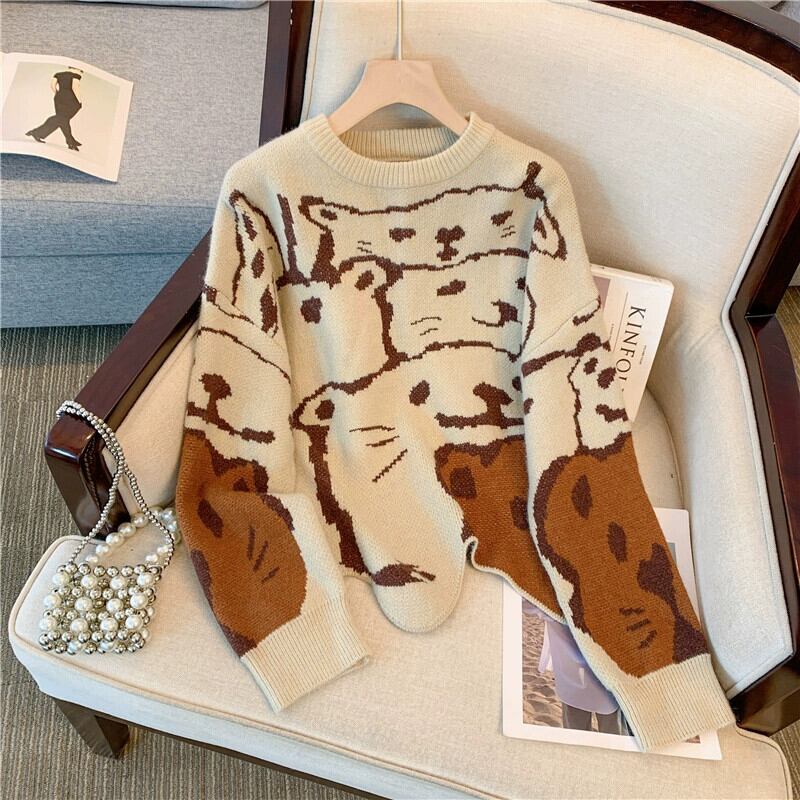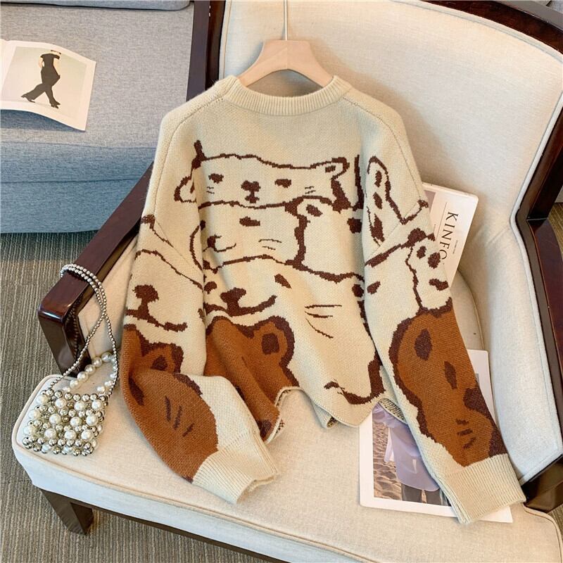 ニットセーター女性の大きいサイズ2023秋ファットシスターラウンドネック長袖ニッチルーズセーター ロング 大きめサイズ オータム 秋物 Oネック 888411640451920