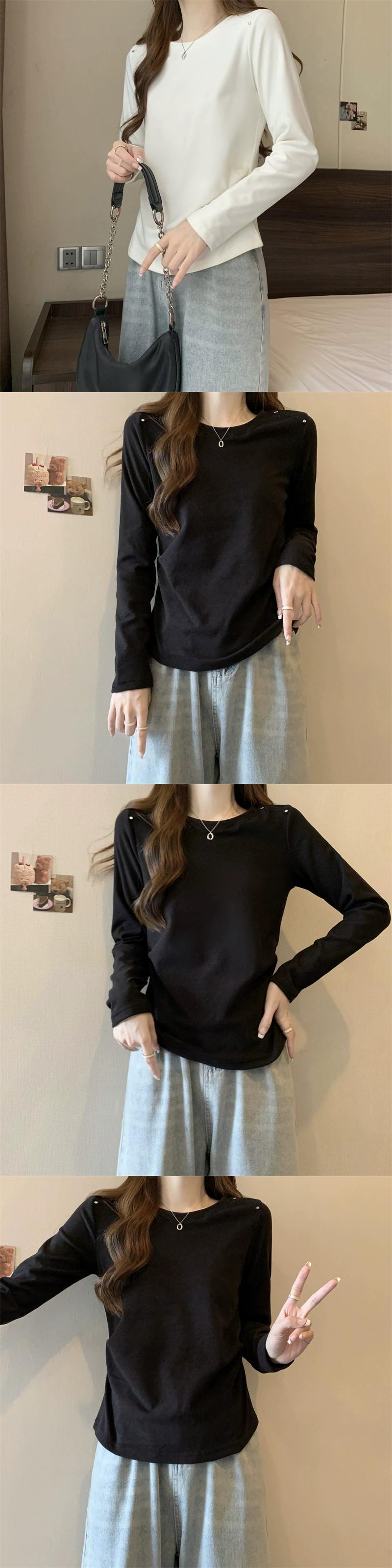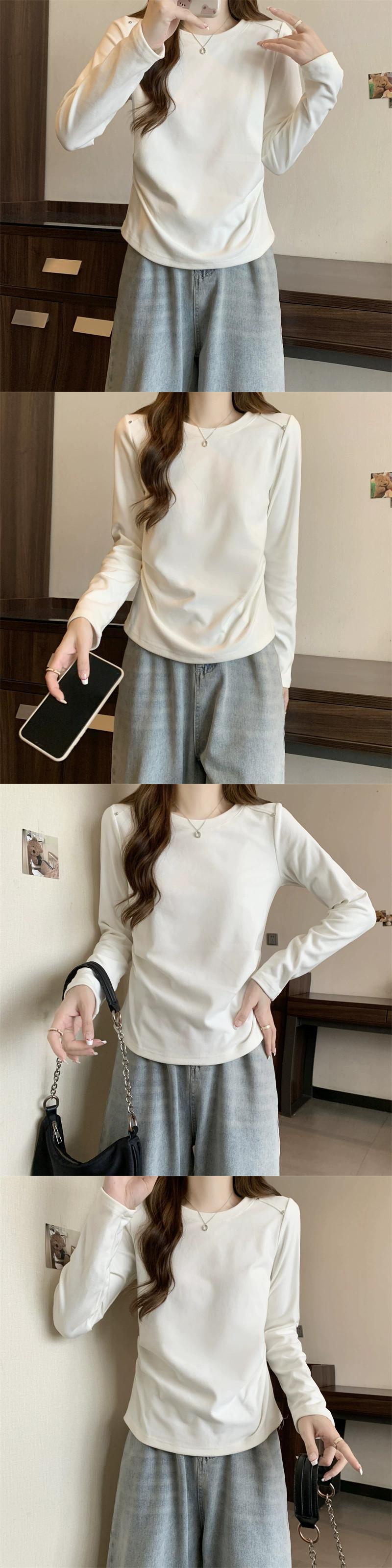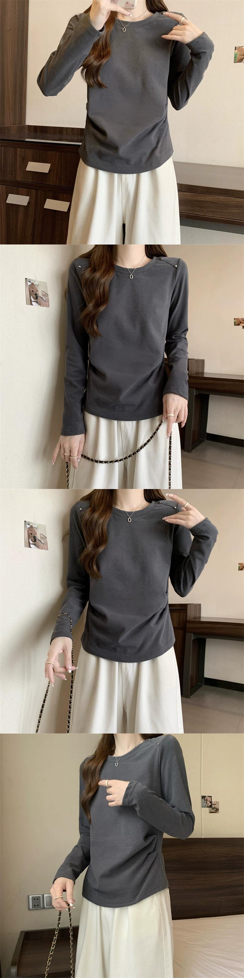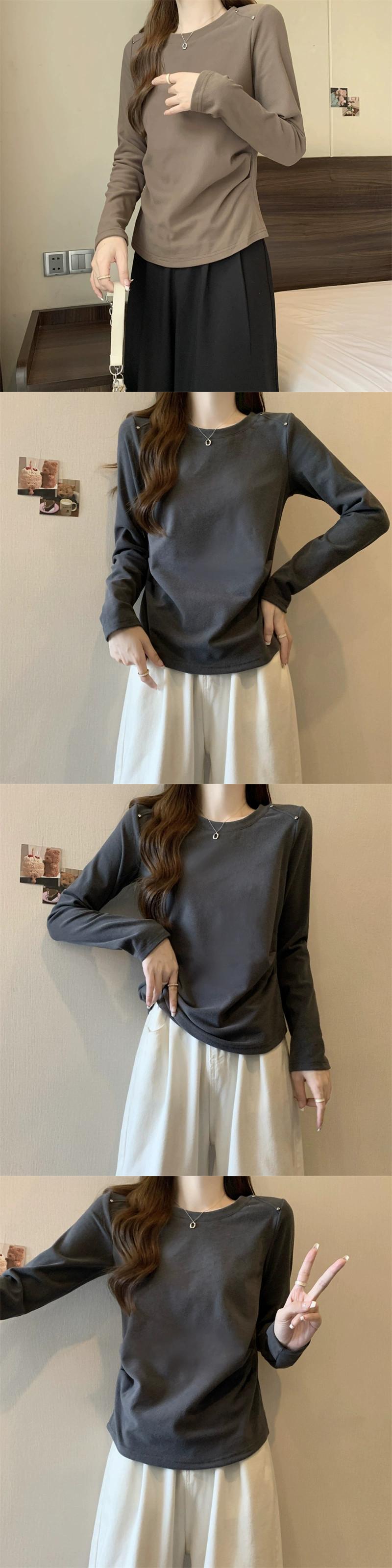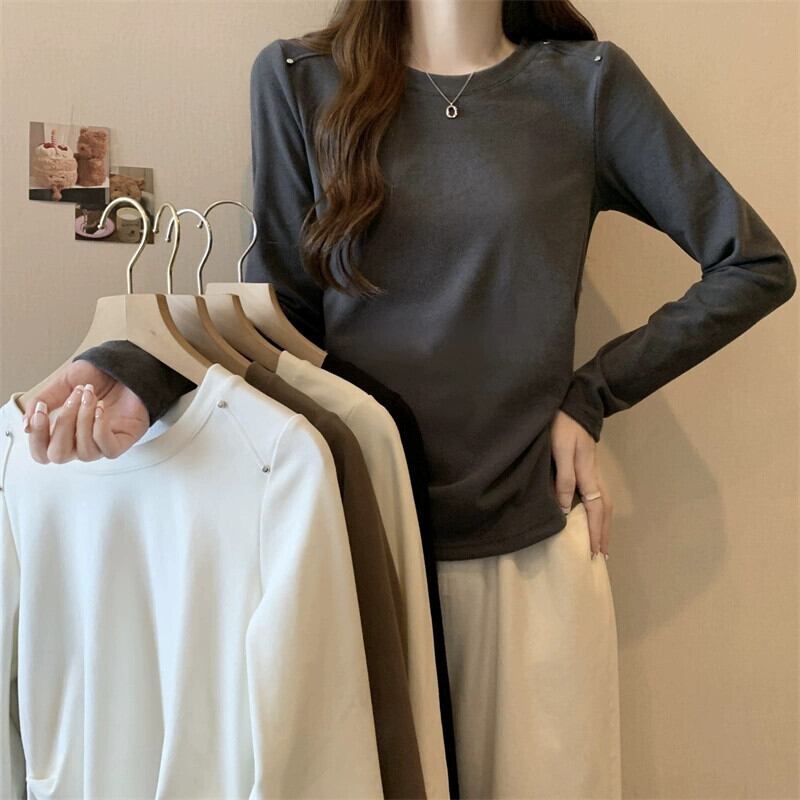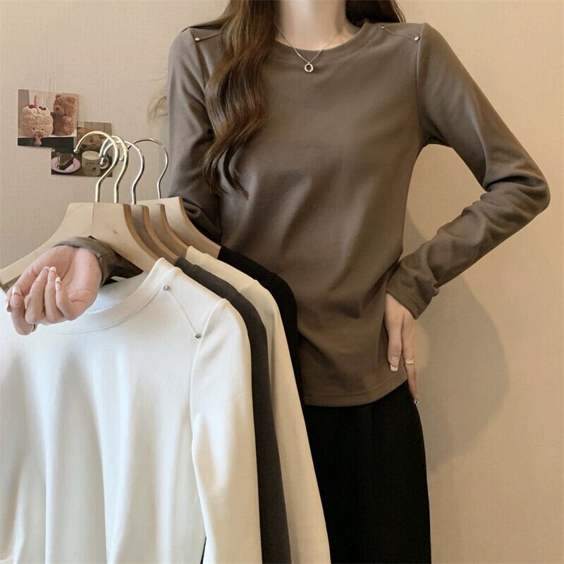 プラスサイズの女性の 2023 秋ファット MM ウエスタンソリッドカラーラウンドネック長袖多用途シック Tシャツトップ ロング 大きめサイズ オータム 秋物 Oネック 8884134976122207