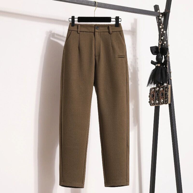 大きいサイズ 2023 ウールパンツの女性の秋冬スタイルハーランやや脂肪 MM スリムパイプキャロット 9 点パンツ 大きめサイズ オータム 秋物 ウィンター 冬物 8884181088664064