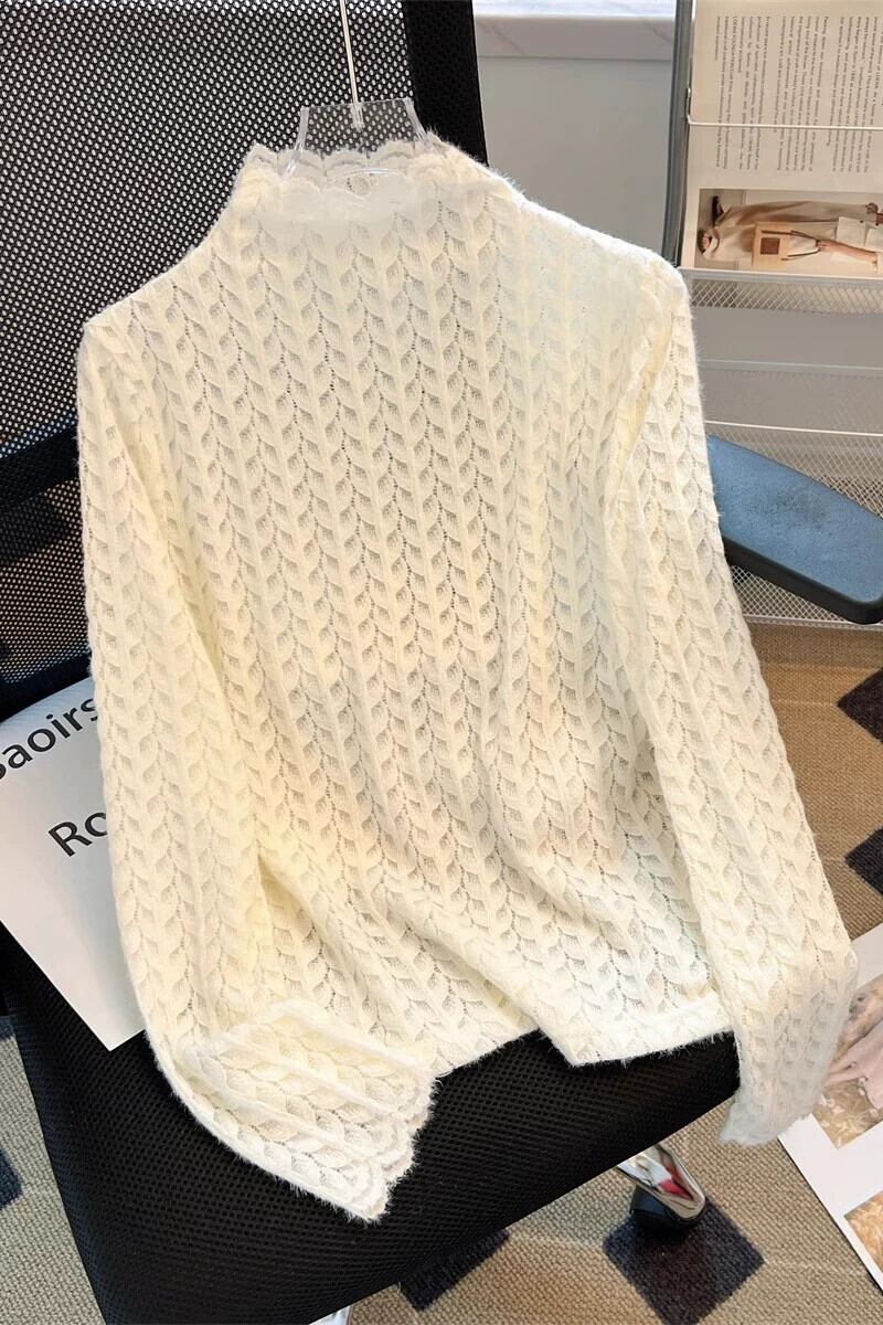 ニットセーター女性の大きいサイズ 2023 秋スタイルファットガールハーフタートルカラー長袖レース無地メッシュセーター ロング 大きめサイズ オータム 秋物 ソリッドカラー 8884121687224320