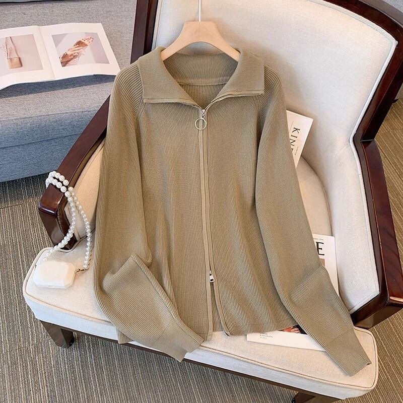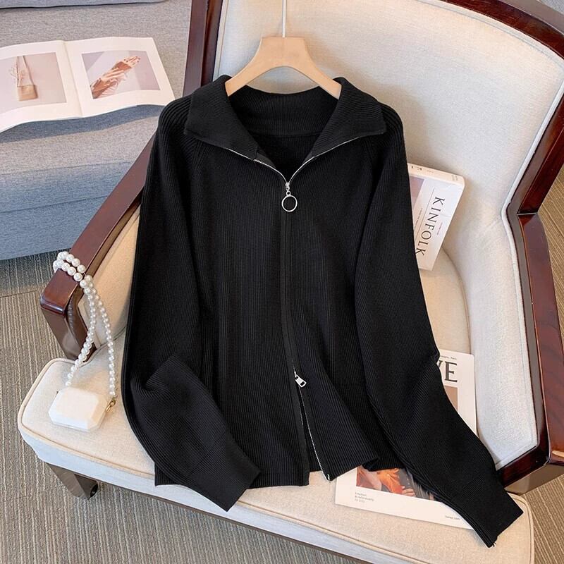 大きいサイズ 2023 秋と冬の新しいファット mm ルーズでスリムな多目的ハイネックダブルジッパー長袖ニットセーター女性 ロング 大きめサイズ オータム 秋物 ウィンター 冬物 8884147704868641