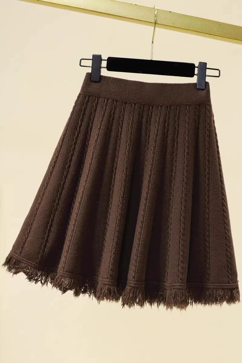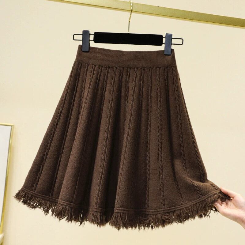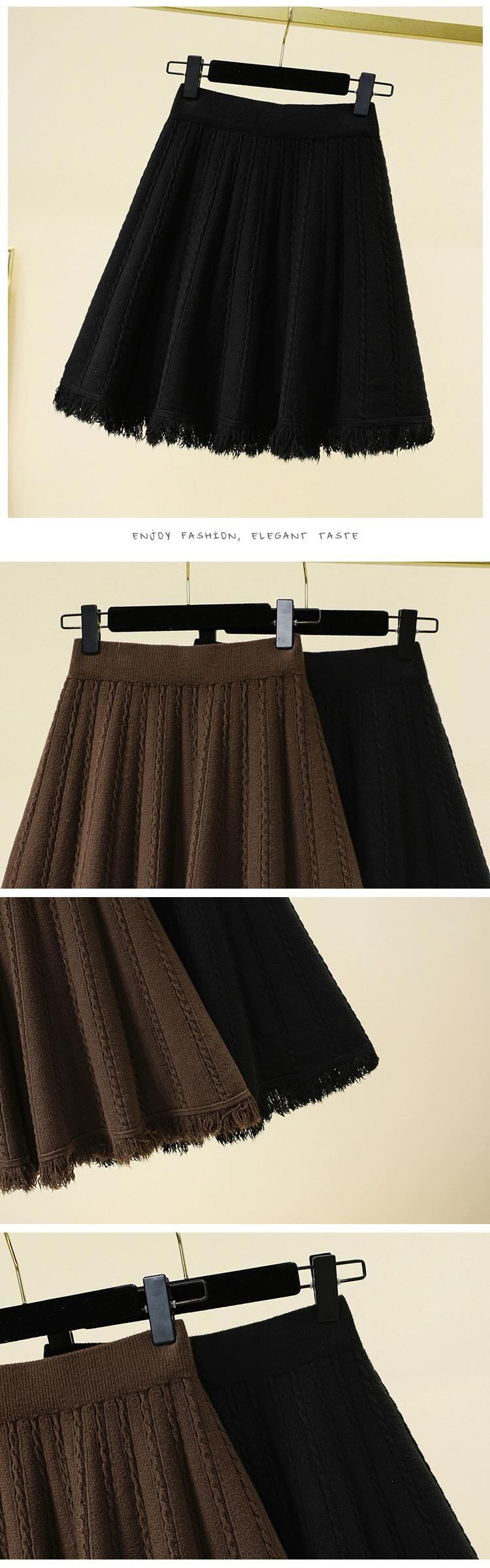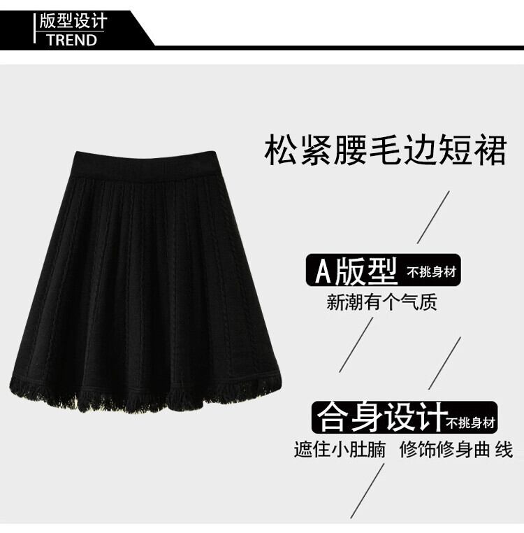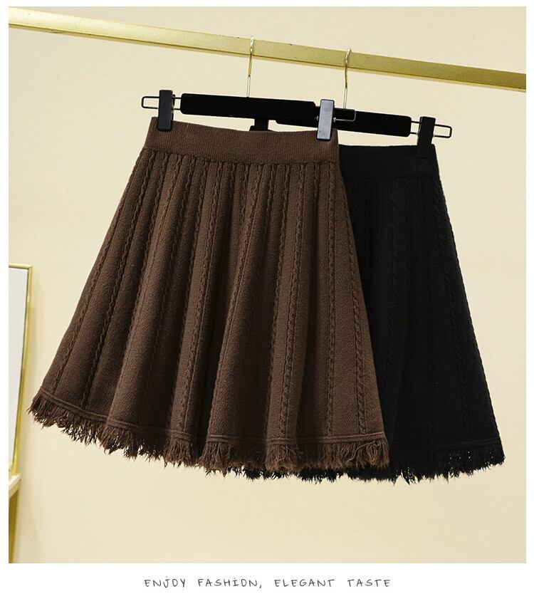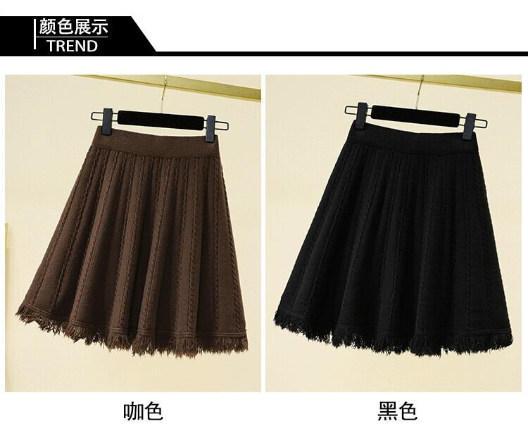 プラスサイズ秋の女性のファッショナブルな弾性ハイウエスト A ラインスカート脂肪 mm 痩身腹カバー年齢軽減ニットスカートトレンディ エラスティック 伸縮 大きめサイズ オータム 秋物 Aライン 888413416951291