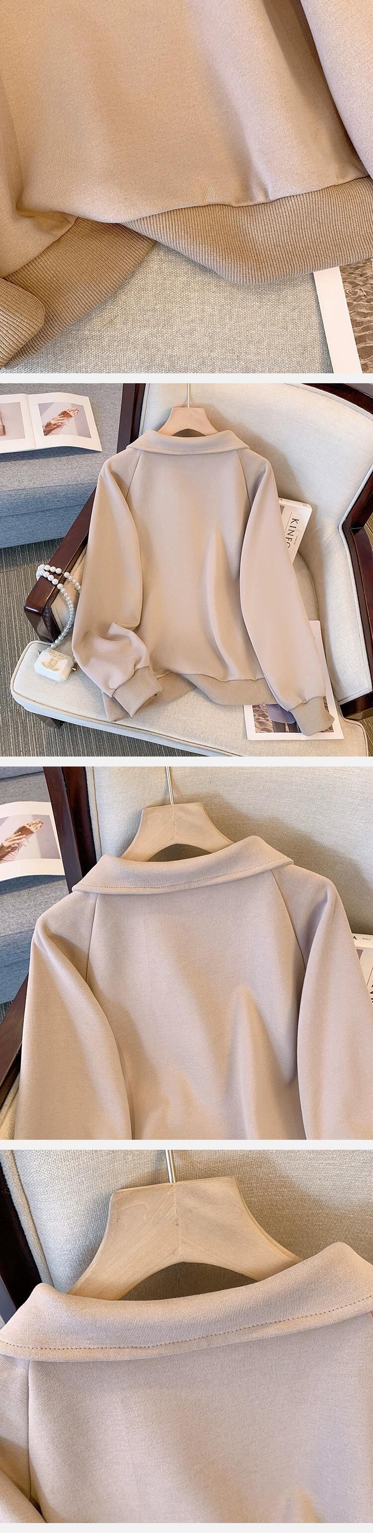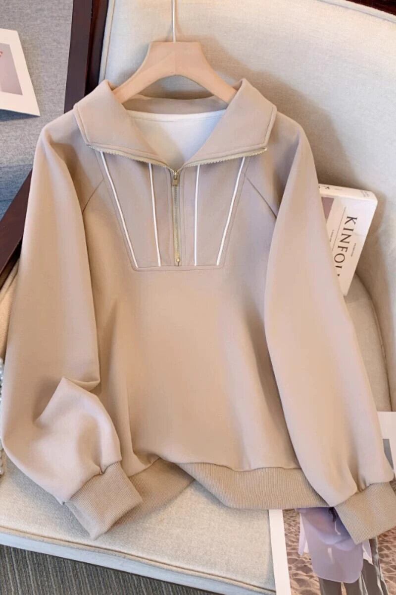 プラスサイズの婦人服 2023 秋と冬の新しいファットシスターハーフジップラペル長袖無地ファッショナブルなルーズプルオーバースウェットシャツ ロング 大きめサイズ オータム 秋物 ウィンター 冬物 ソリッドカラー 8884122589779144
