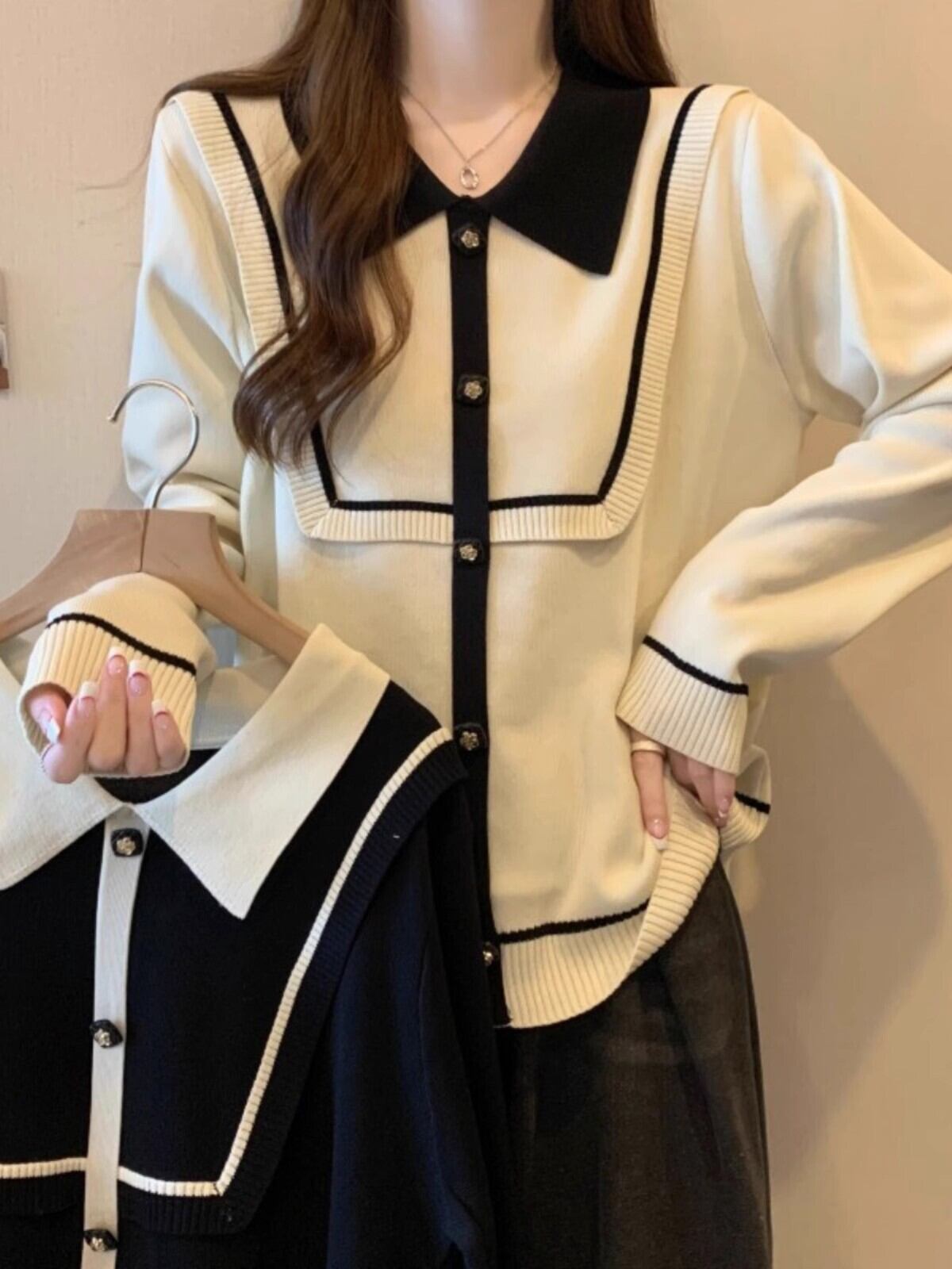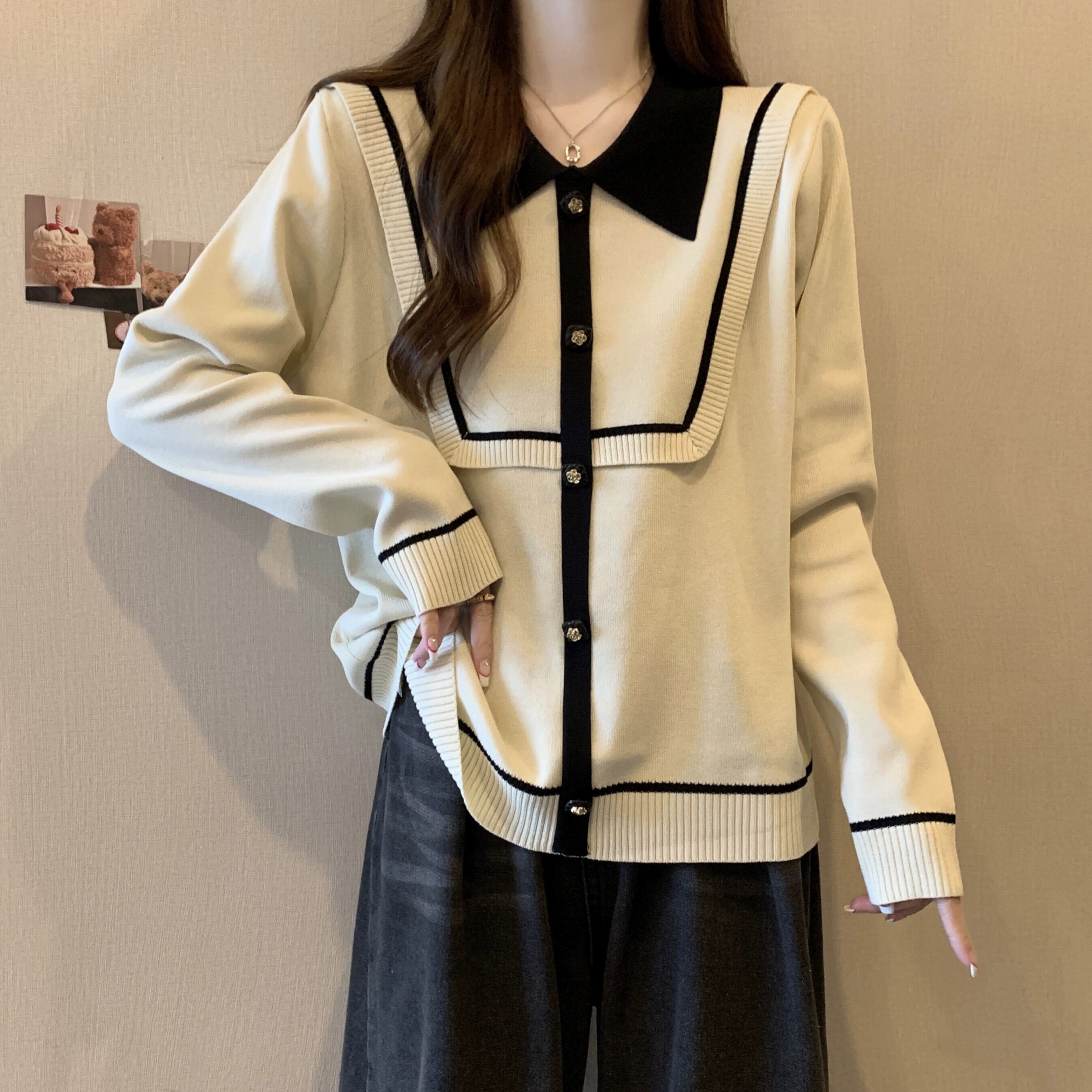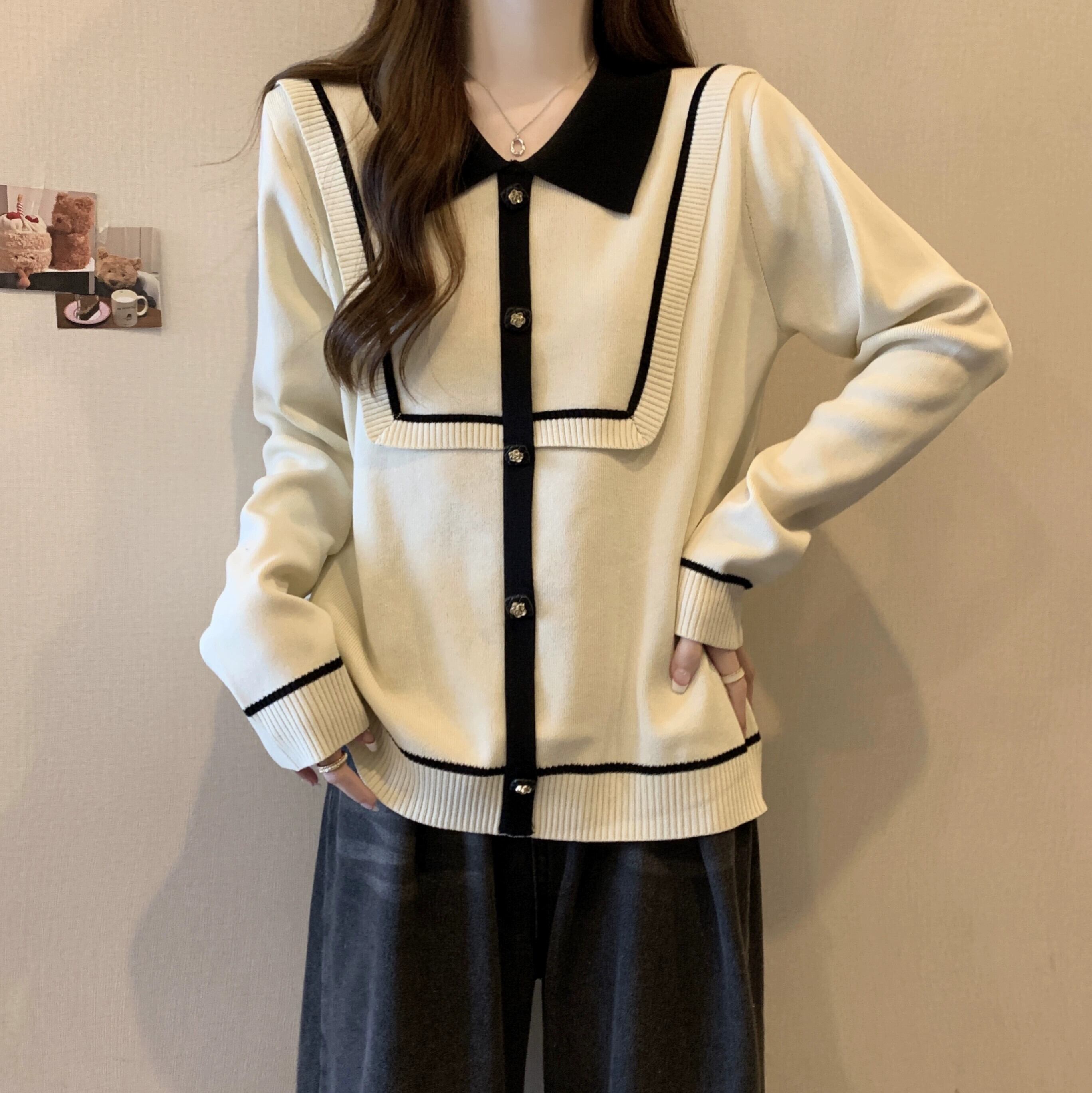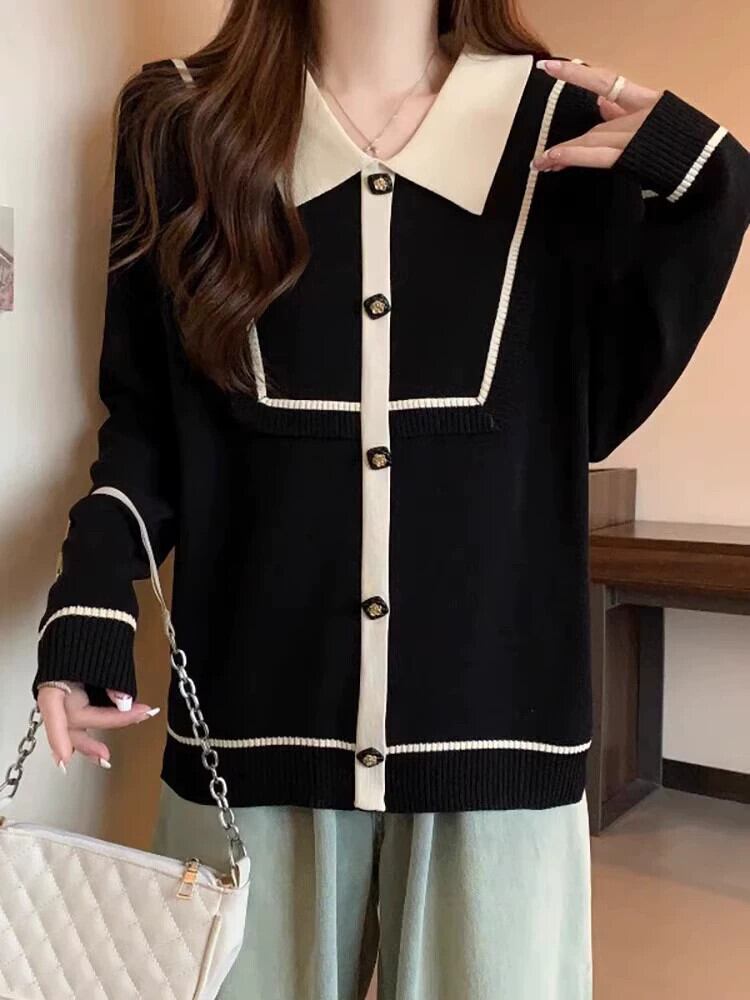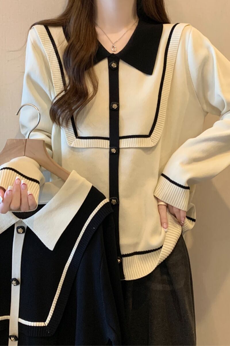 プラスサイズの秋の新ポロカラーストライプハイエンドニットセーターファットミリメートル女性のファッションスリムルーズ長袖トップ ロング 大きめサイズ オータム 秋物 8884125238815100