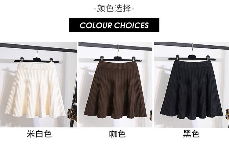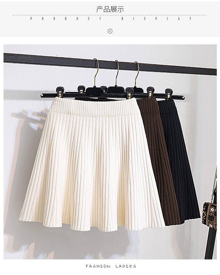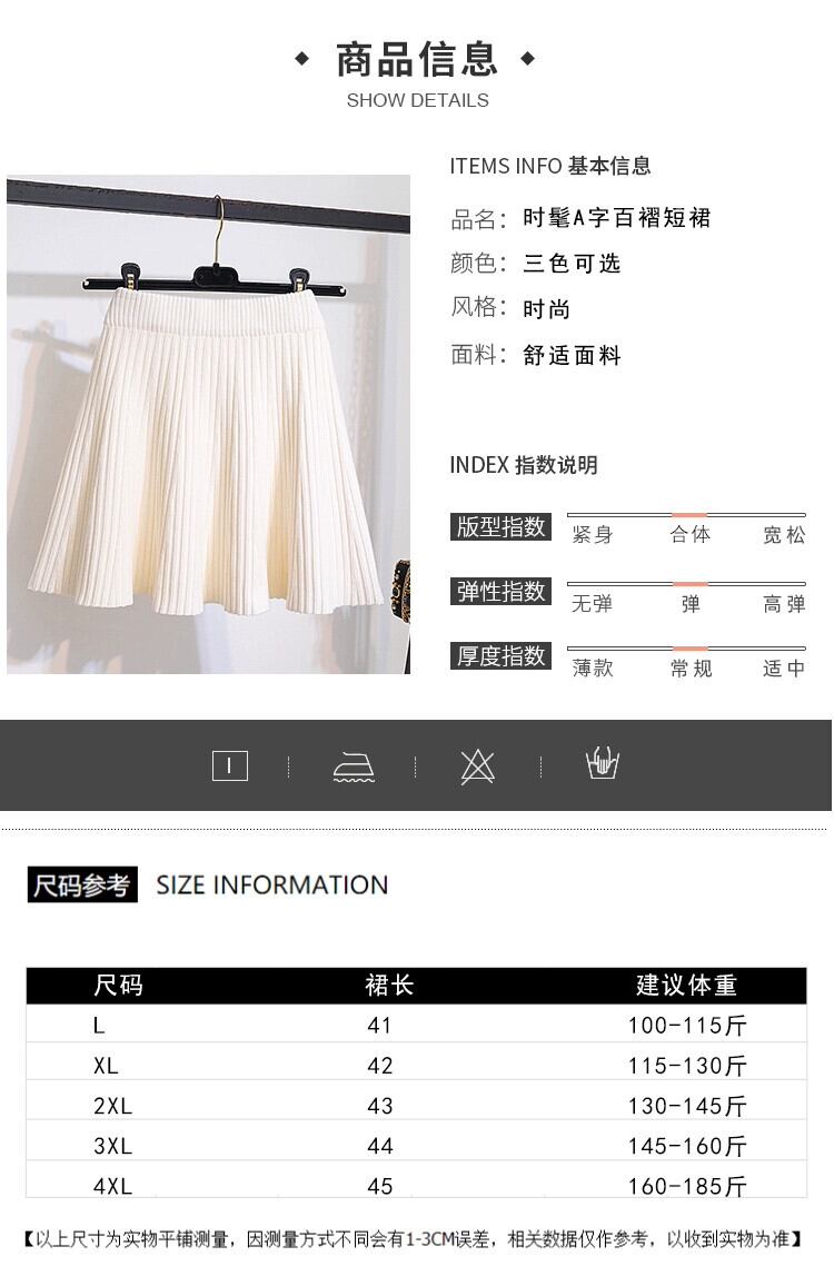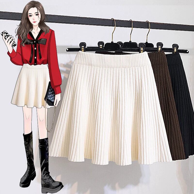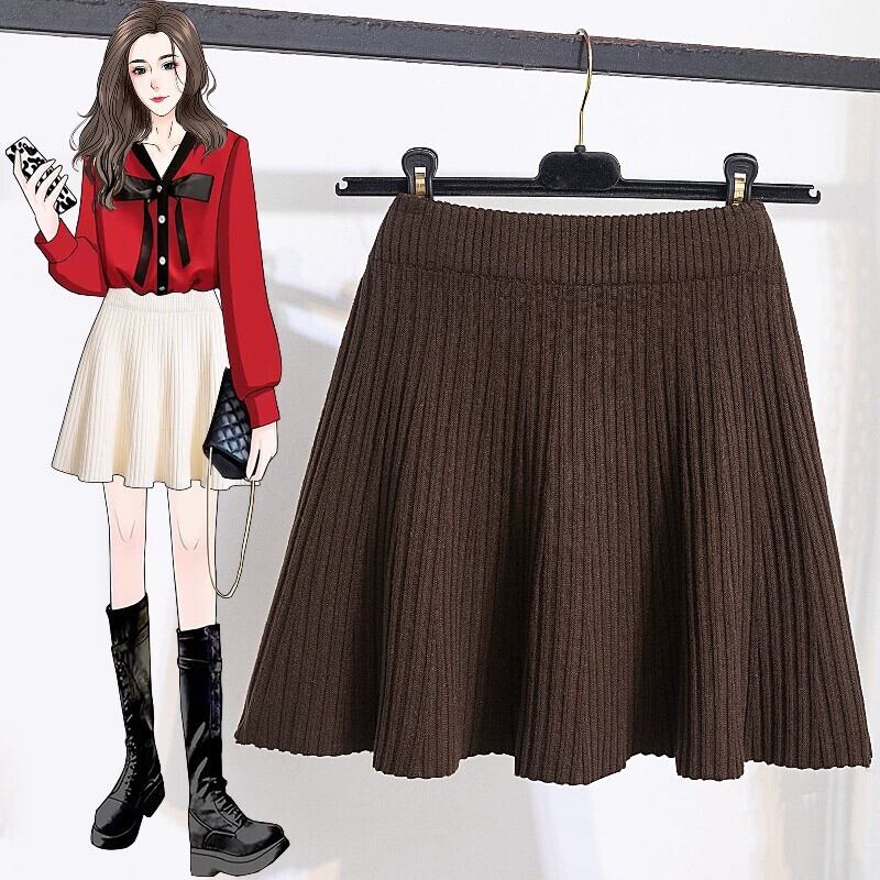 プラスサイズ秋 2023 脂肪 MM ソリッドカラーウエスト腹カバー A ラインスリムプリーツニットスカート 大きめサイズ オータム 秋物 Aライン 8884154092387060