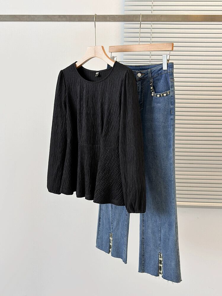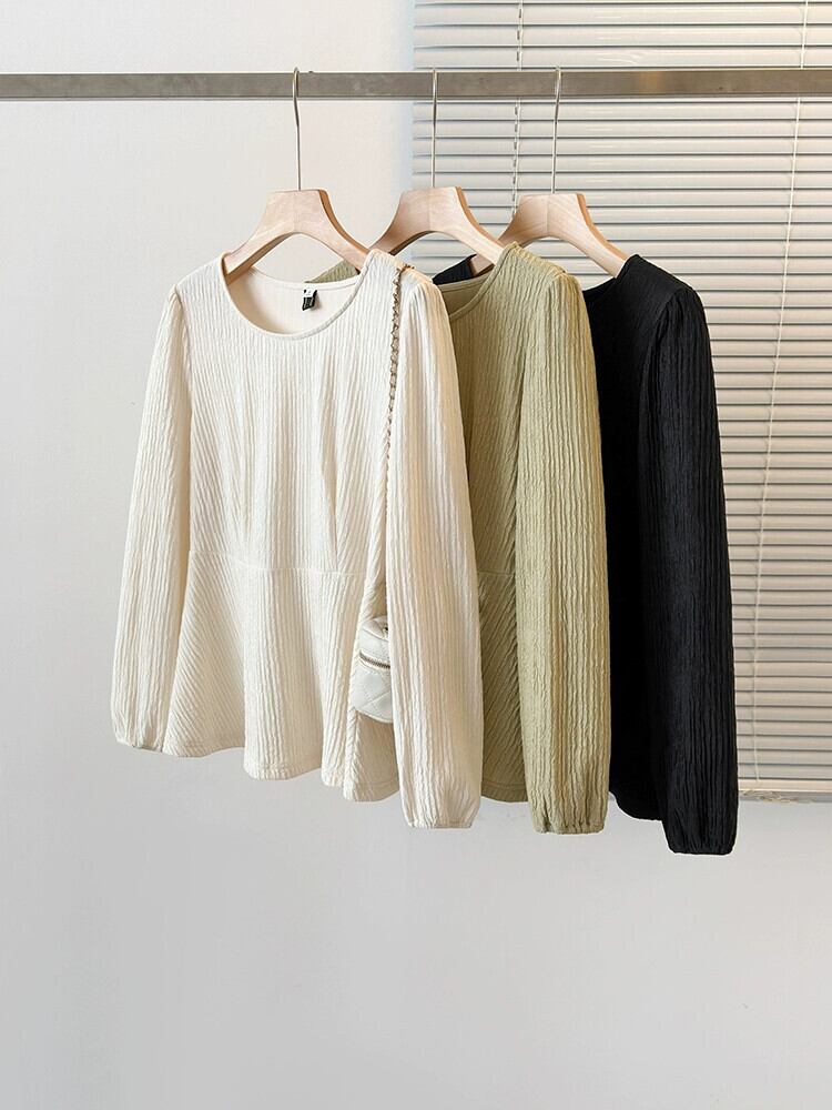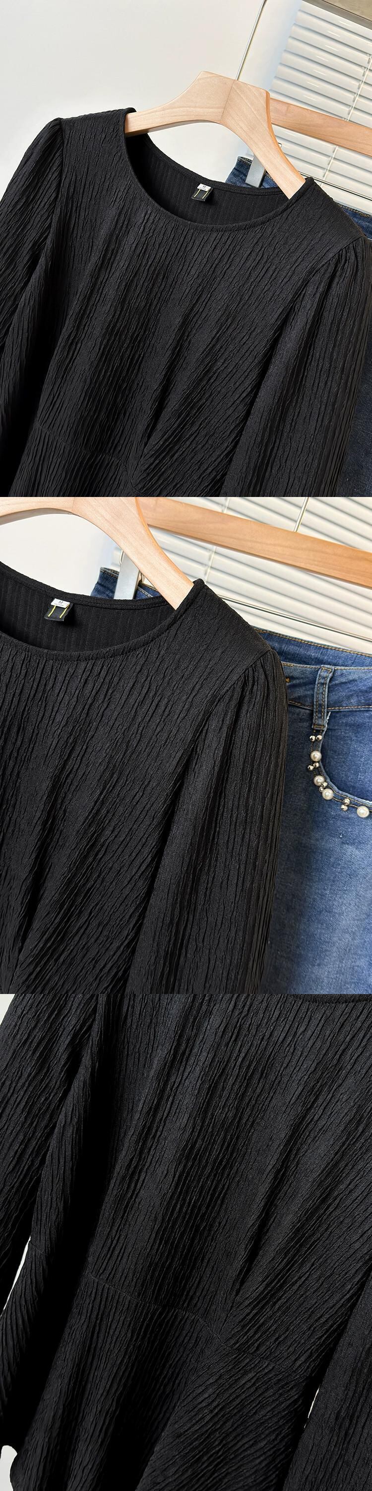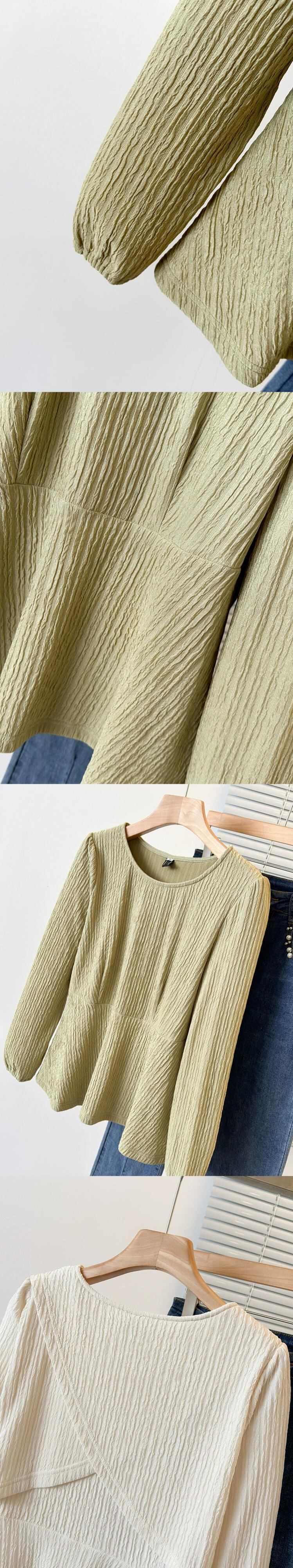 プラスサイズの婦人服 2023 新しい秋スタイルファットファッショナブルで多用途なラウンドネック長袖デザイン痩身と年齢を減らすトップス ロング 大きめサイズ オータム 秋物 Oネック 8884194994796154