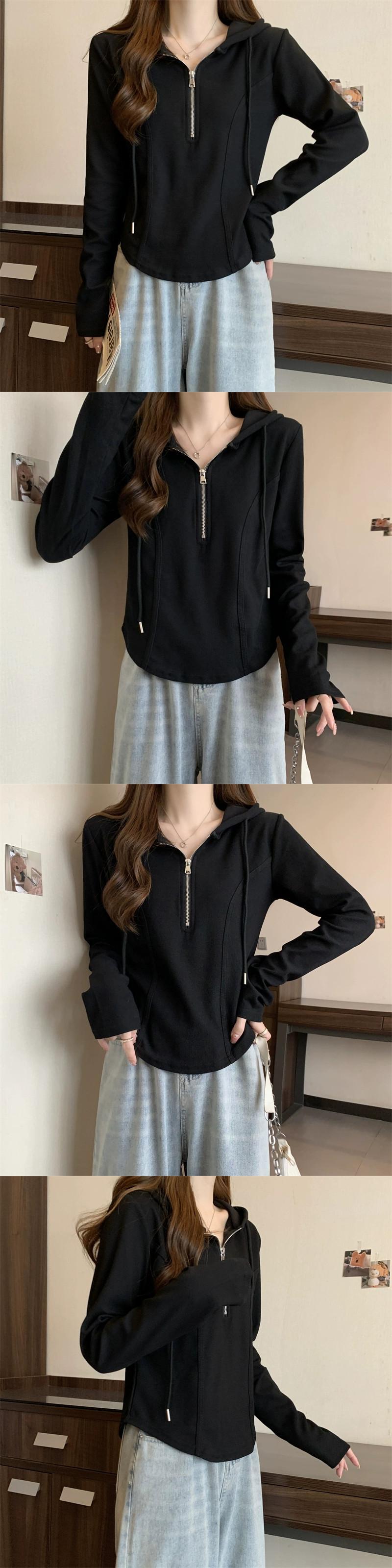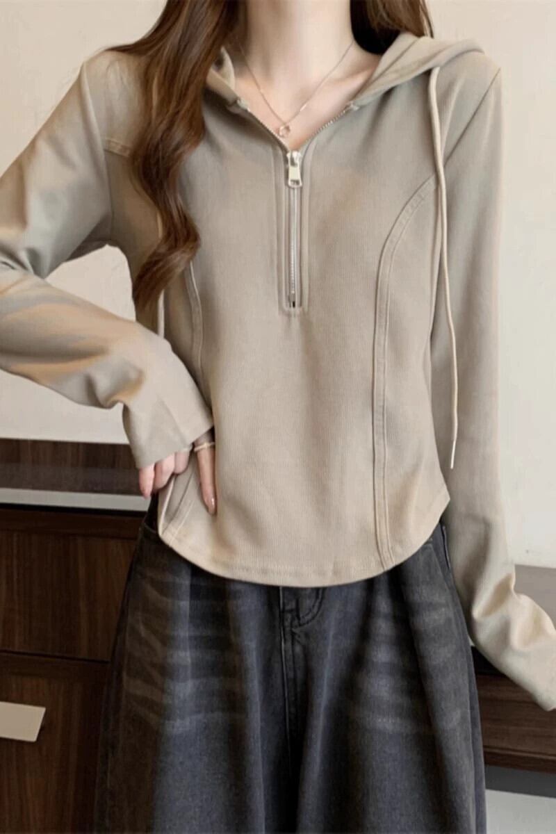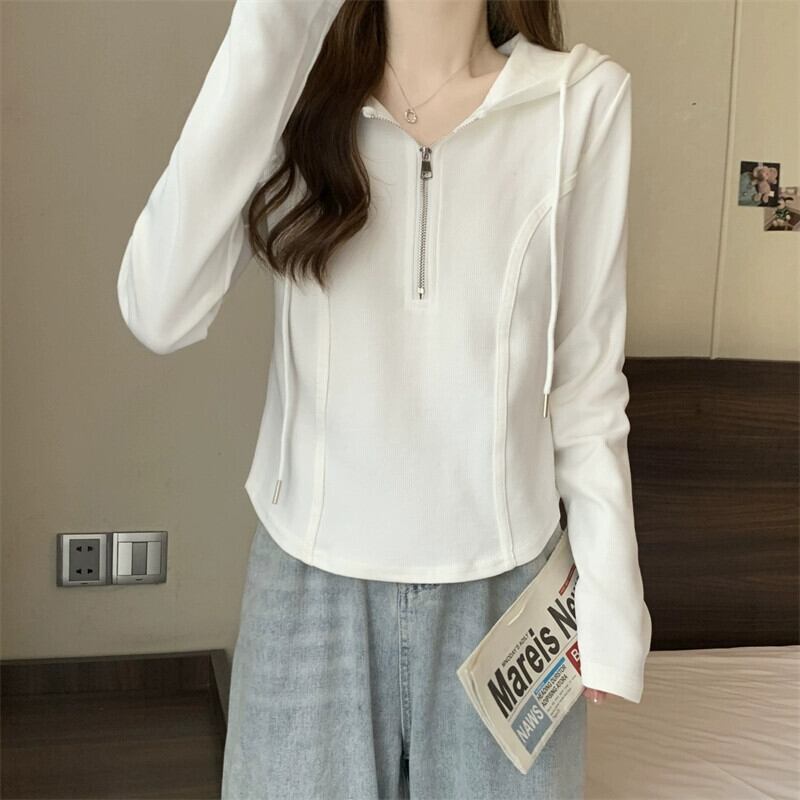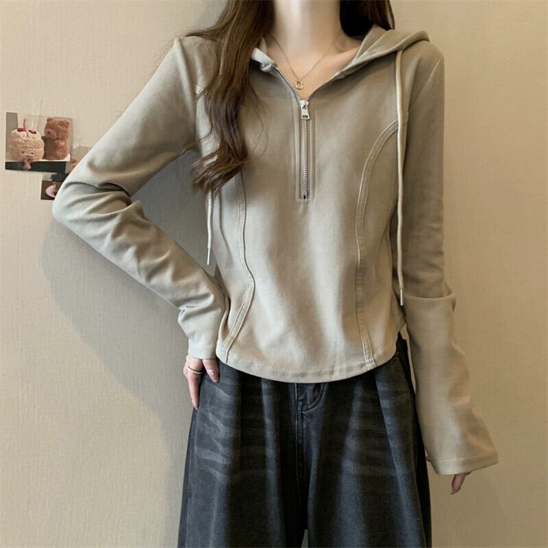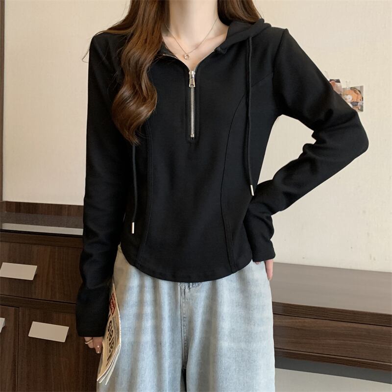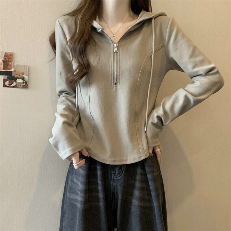 プラスサイズの婦人服ファット mm 2023 秋と冬の新しいスリム長袖 Tシャツトレーナージャケットフード付き右肩トップトレンディ ロング 大きめサイズ オータム 秋物 ウィンター 冬物 8884127344371079