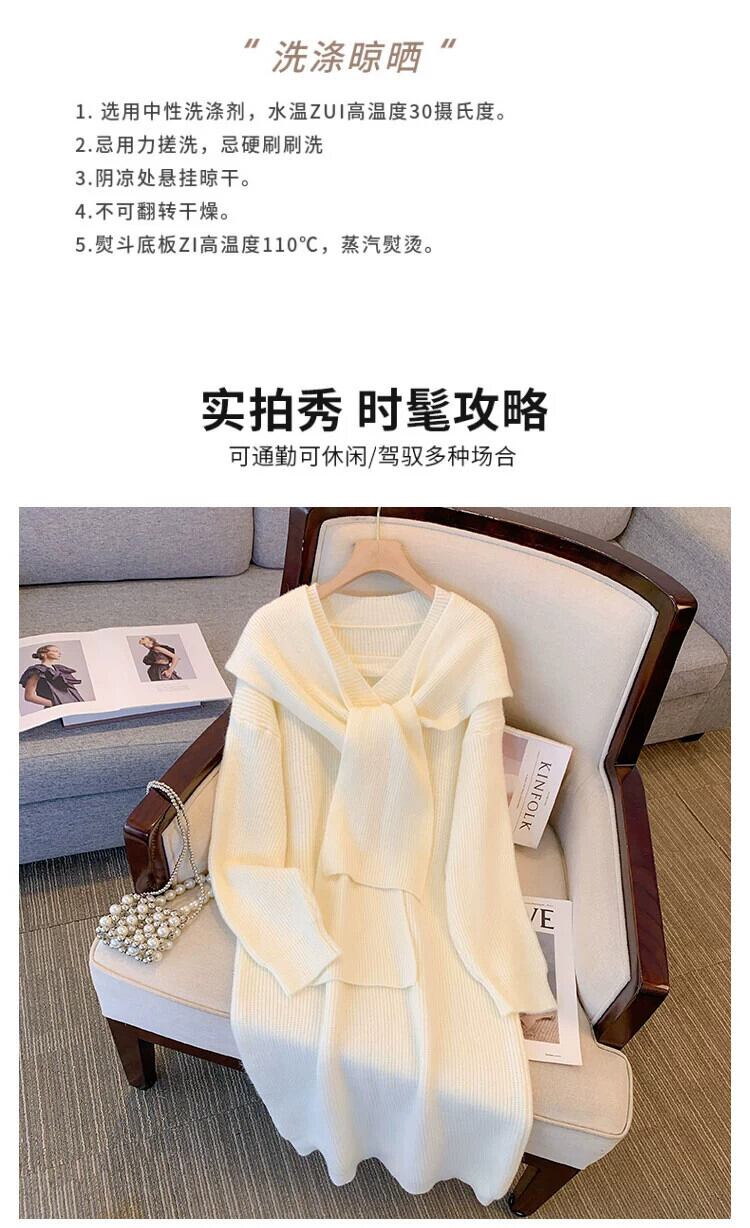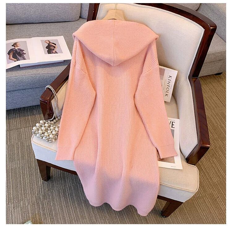 プラスサイズ脂肪 mm フード付きニットドレス女性の痩身カバー腹セータースカート女性の秋と冬の新しいロングスタイルトレンディ 大きめサイズ オータム 秋物 ウィンター 冬物 8884175394850320