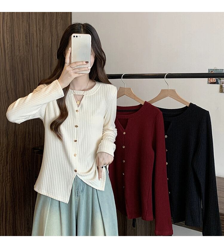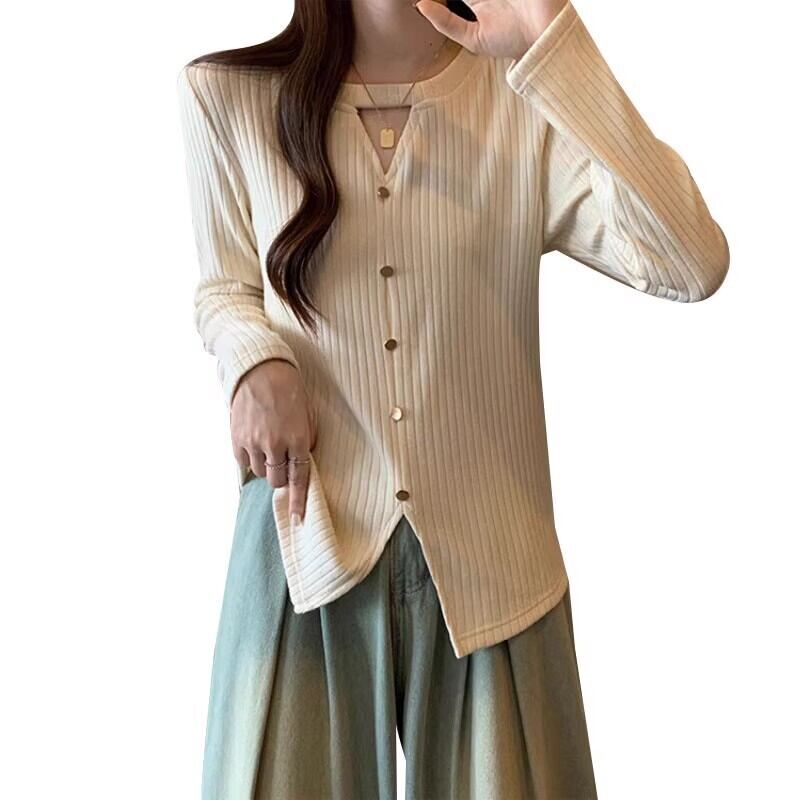 プラスサイズの婦人服 2023 秋の新ファット mm デザインニッチスリミング中空シックな右肩底シャツトップ 大きめサイズ オータム 秋物 8884114975718836