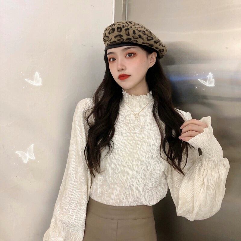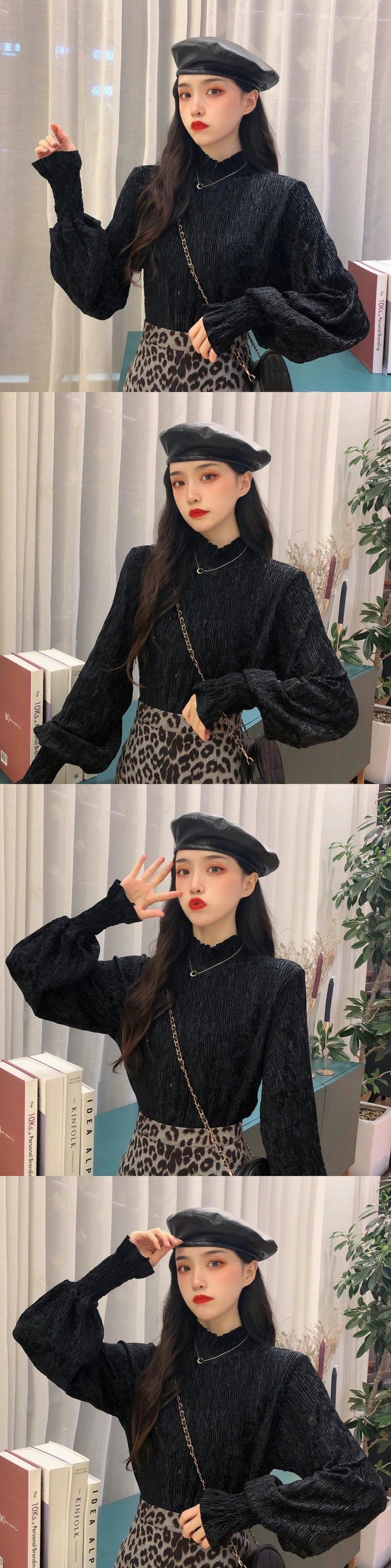 大きいサイズ無地パフスリーブハイカラーセーター女性 2023 秋と冬の新しい女性の脂肪ミリメートルカバー肉インナーレイヤリングシャツ 大きめサイズ オータム 秋物 ウィンター 冬物 ソリッドカラー 8884123549520544