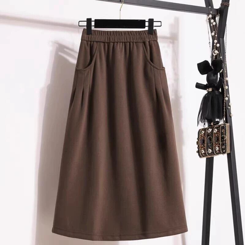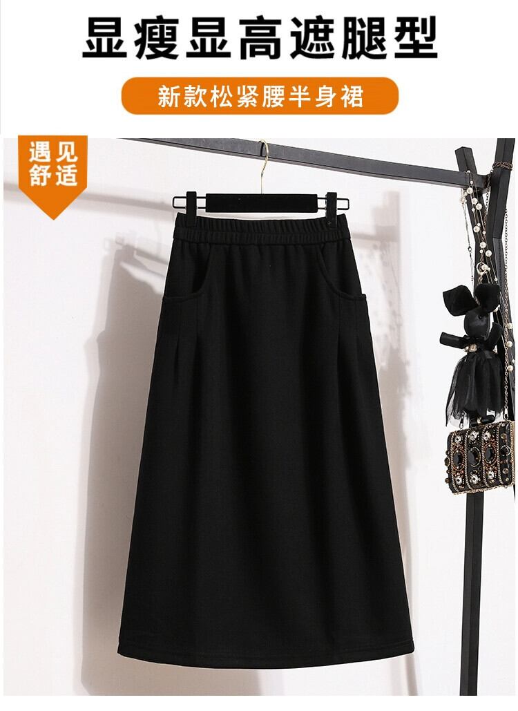 プラスサイズの秋の新しいシンプルなストレッチコーデュロイスカート太った女性、多用途、スリム、ルーズAラインスカート、ロングスカート 大きめサイズ オータム 秋物 8884168129543869