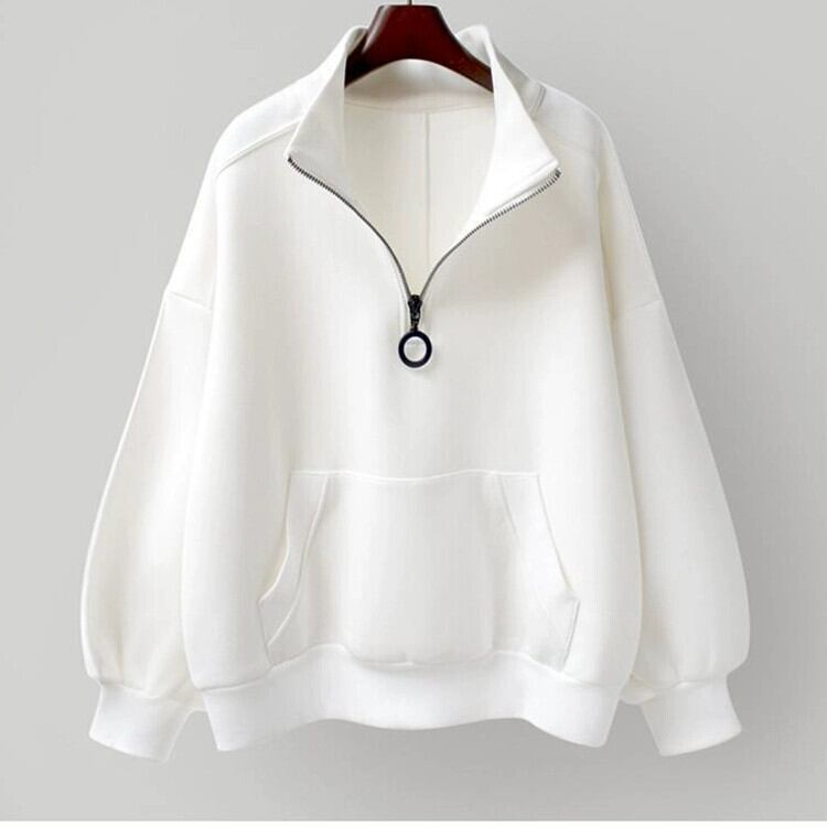 プラスサイズの女性の秋の新しいスタイルのフルマッチ肌カバーポロカラートップ脂肪 mm 痩身ハーフジップスウェットシャツジャケット 大きめサイズ オータム 秋物 8884128746758397