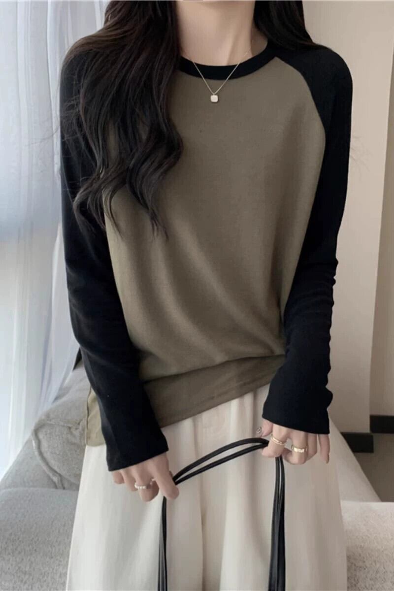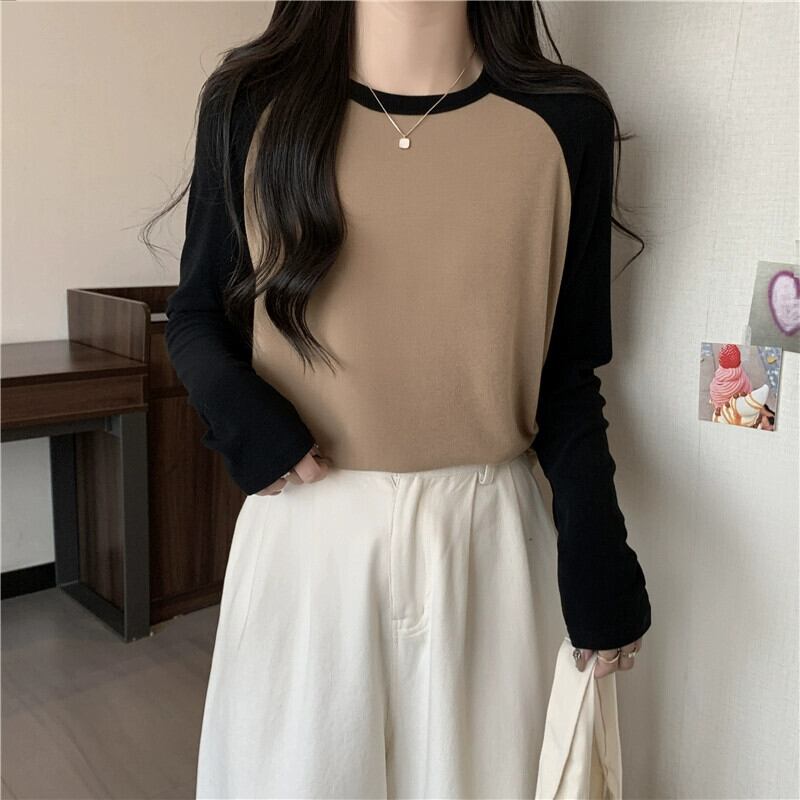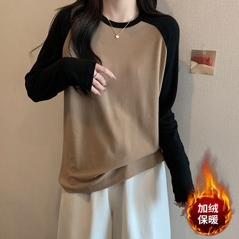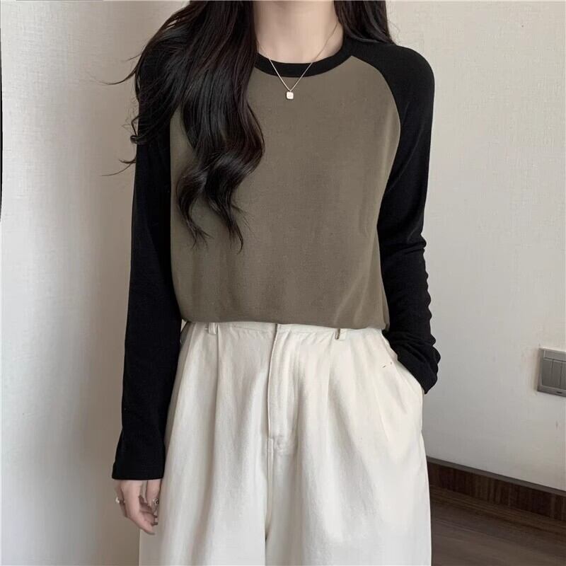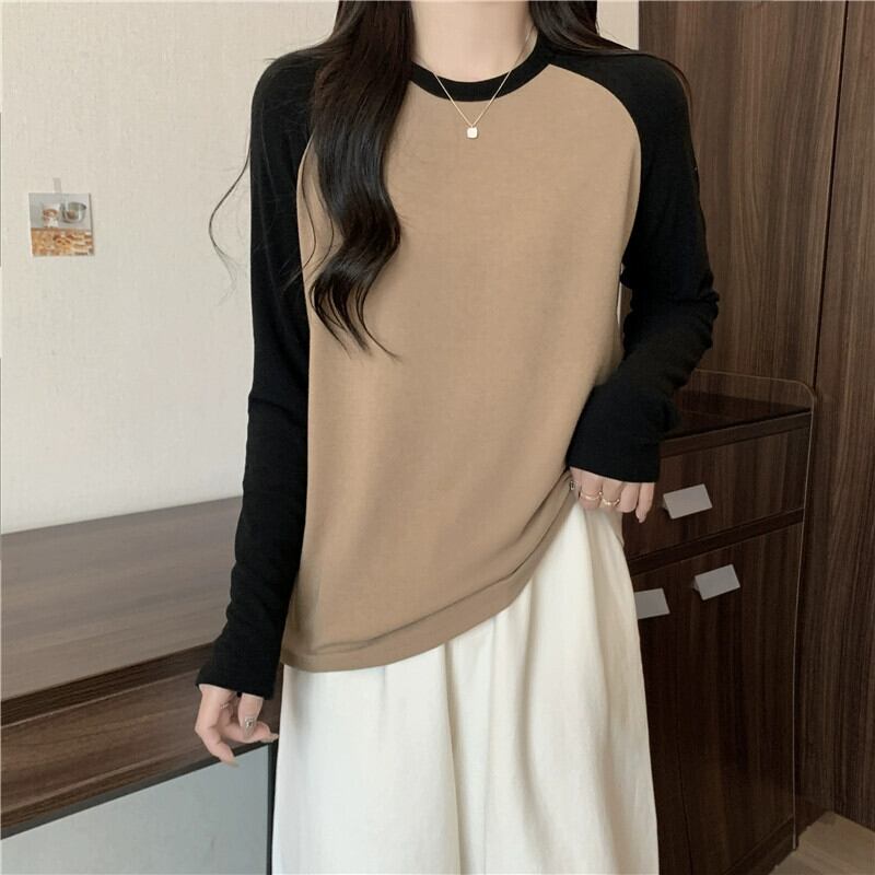 プラスサイズの女性の秋の新 2023 ラウンドネックラグラン長袖 Tシャツルーズ痩身万能ボトリングシャツトップ ロング 大きめサイズ オータム 秋物 Oネック 8884193601453818