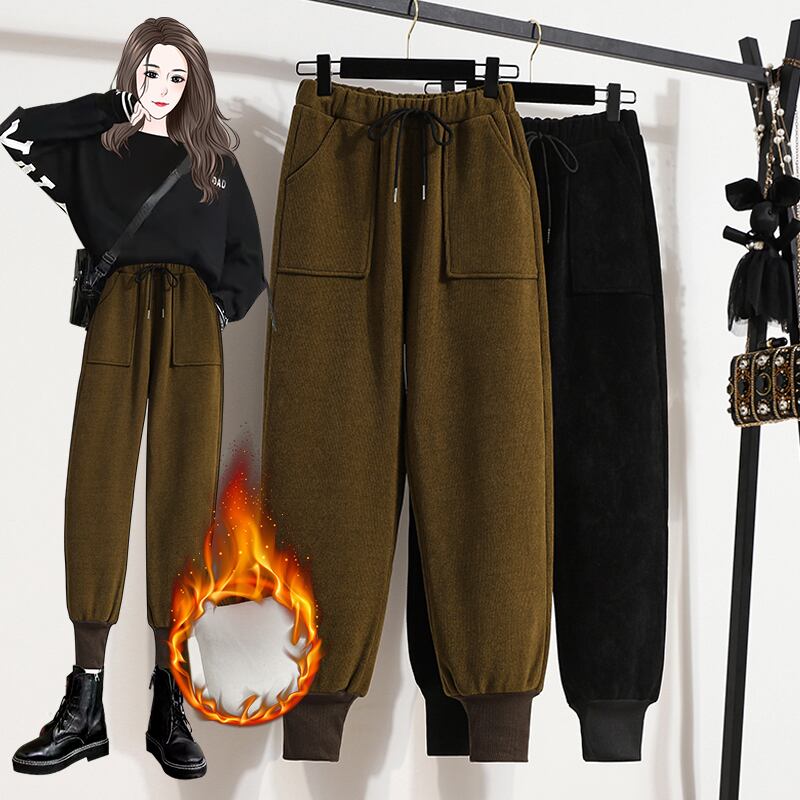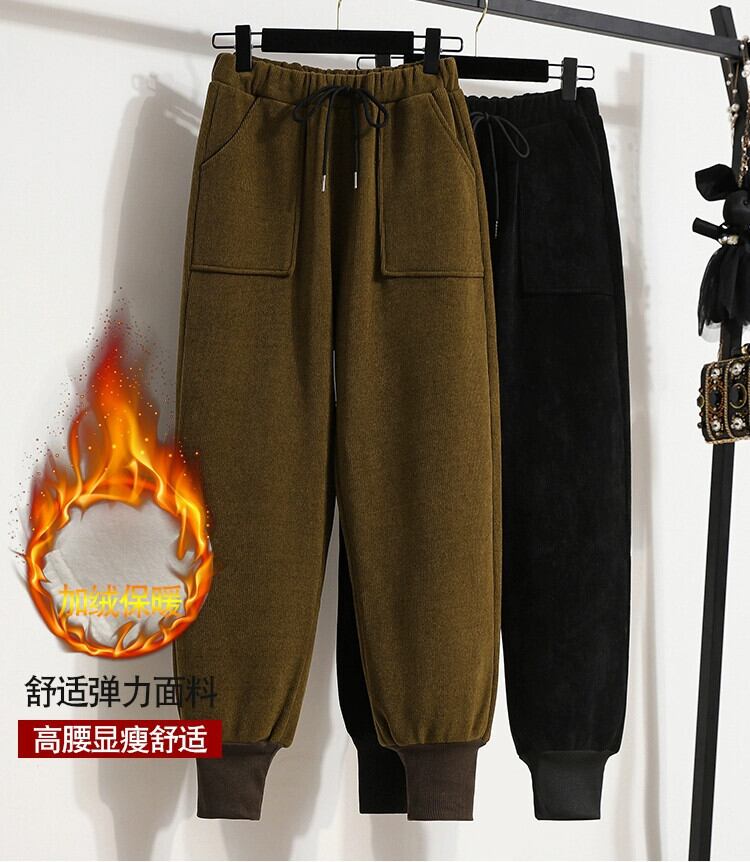 大きいサイズのベルベット肥厚スウェットパンツ女性の足バインド冬新しい脂肪ミリメートルルーズハーレムカジュアルスウェットパンツの外側に着用綿パンツ コットン 大きめサイズ ウィンター 冬物 8884145643029279