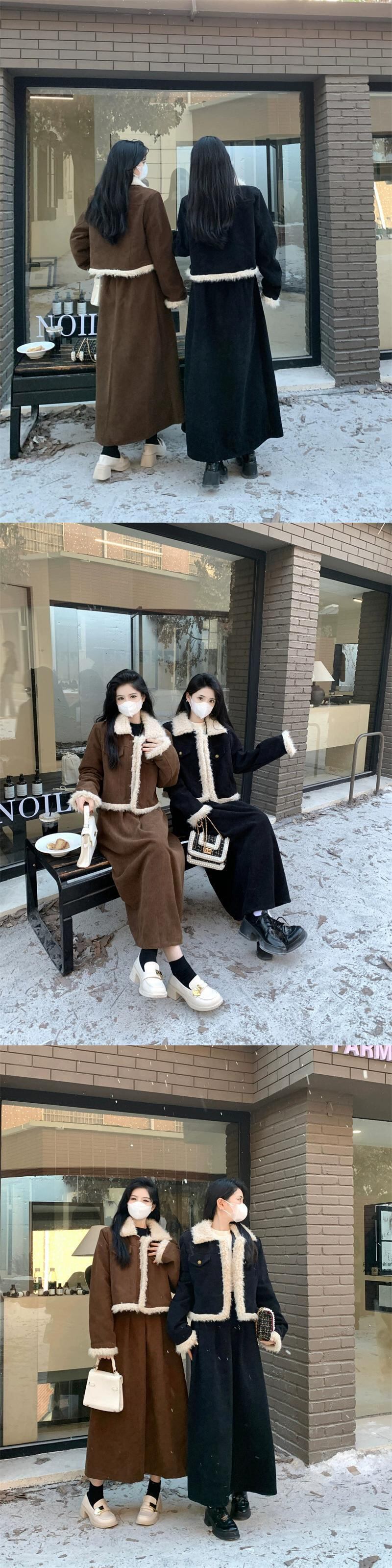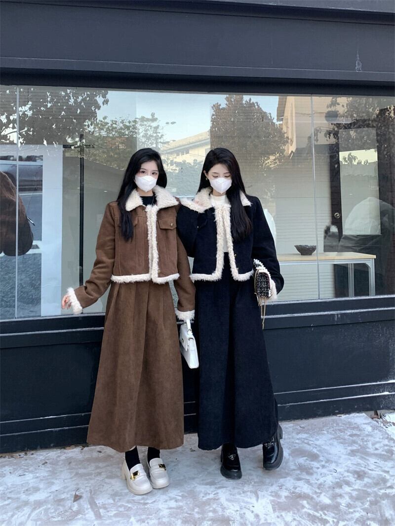 色:シングルブラックコート,シングルコーヒーカラーコート,シングルブラックスカート,シングルコーヒーカラースカート