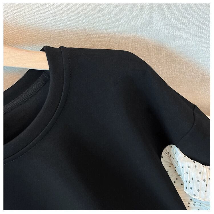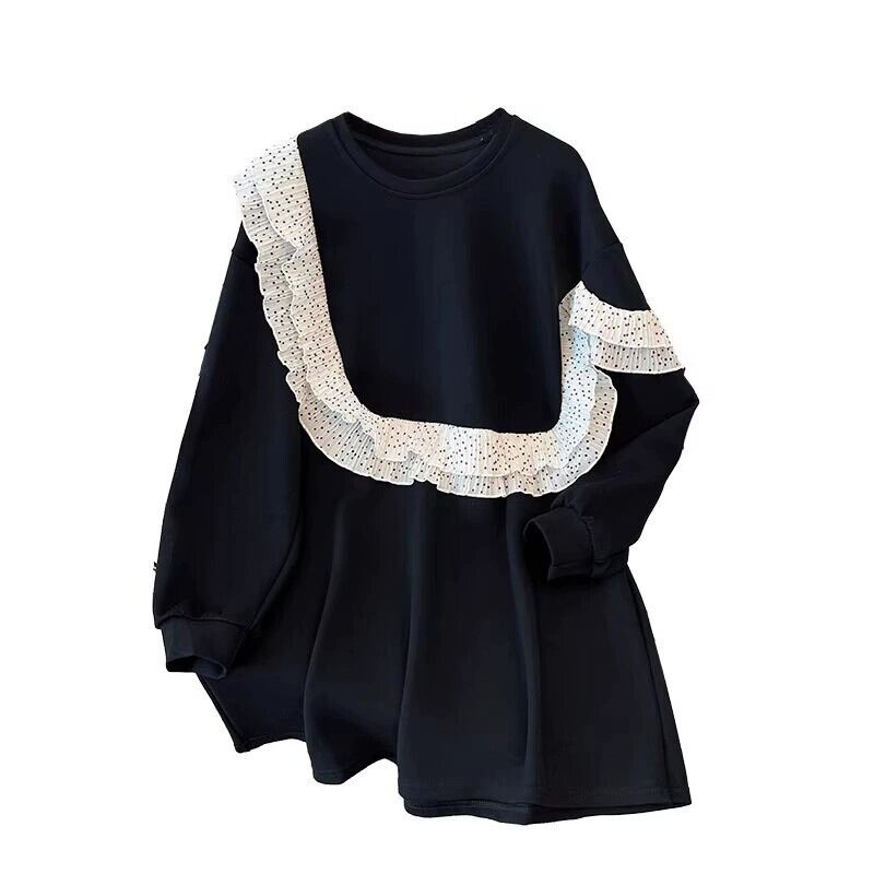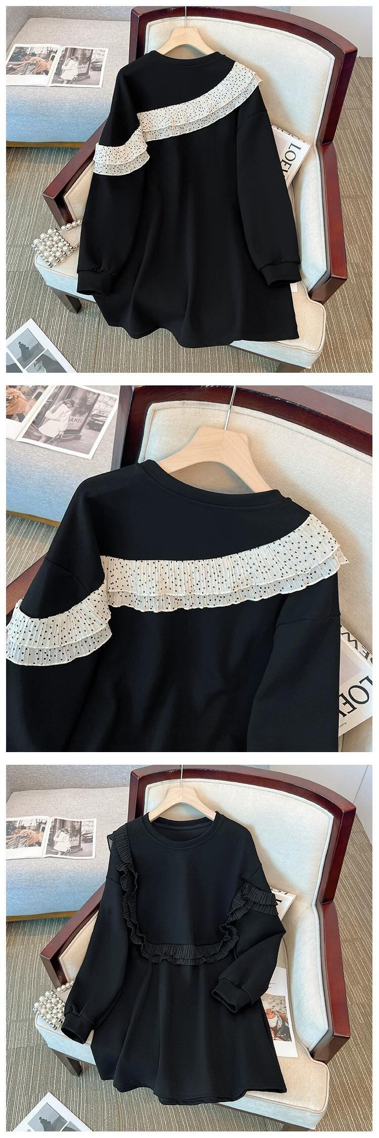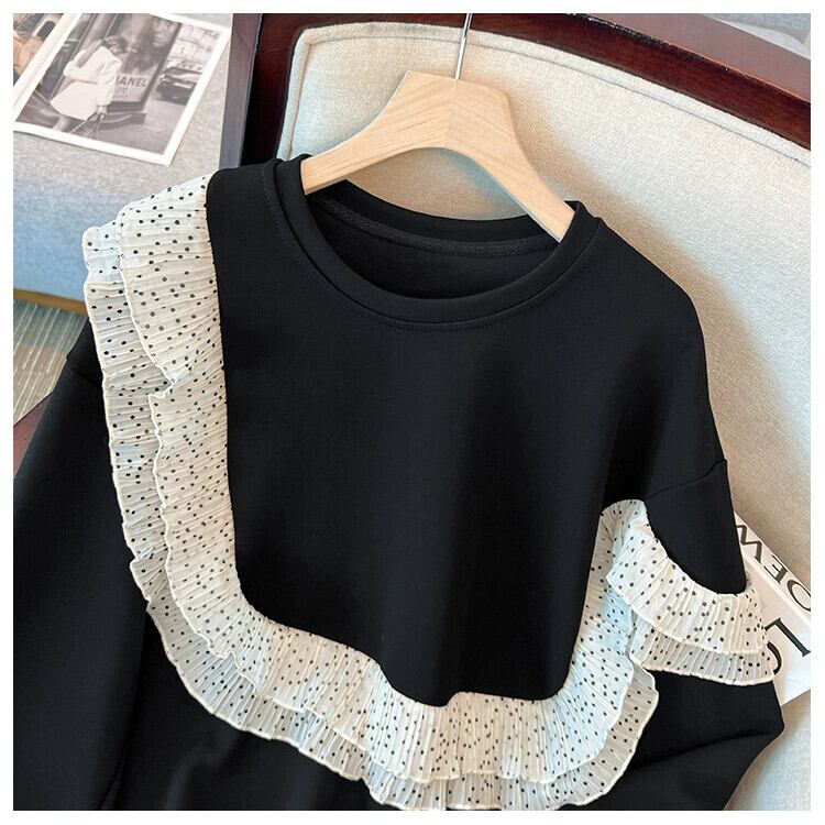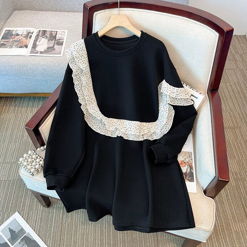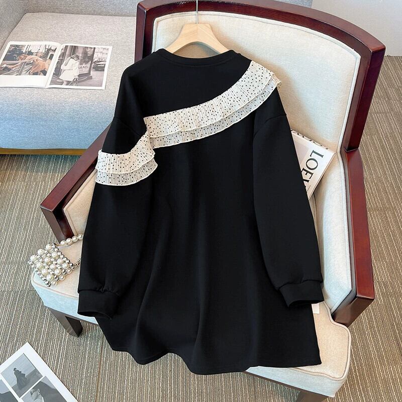 大きいサイズ秋フリルスプライシングデザインスウェットシャツスカート太mm女性、ファッショナブルな年齢を減らすゆるい痩身ドレス 大きめサイズ オータム 秋物 8884139055076119