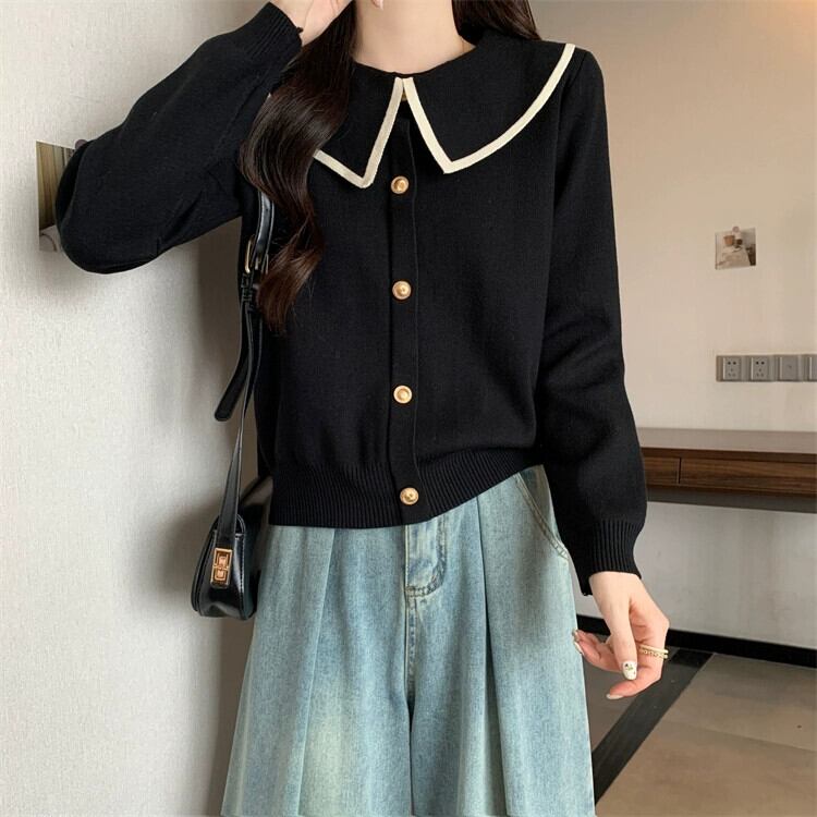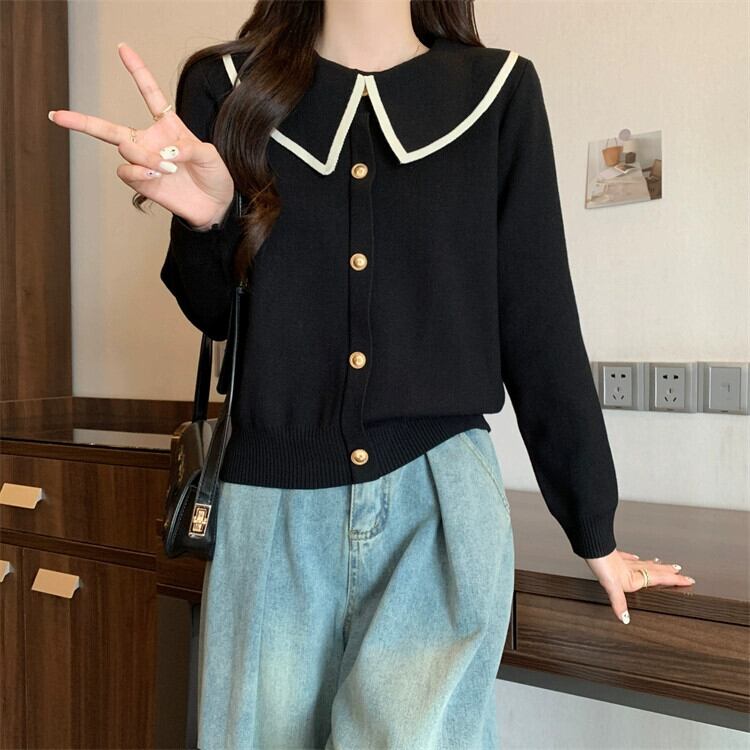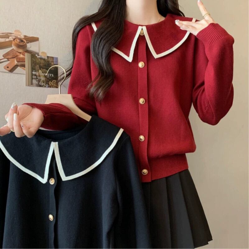 プラスサイズの秋の新女性のソリッドカラーの人形の襟長袖トップスファットMMファッションスリム多目的セーターセーター ロング 大きめサイズ オータム 秋物 8884111650562699