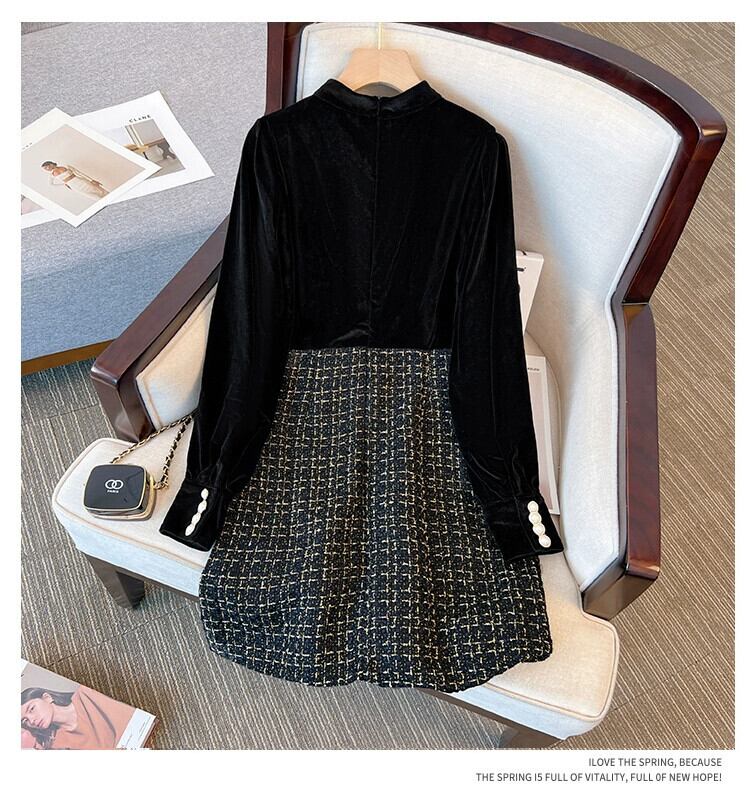 プラスサイズ秋 2023 新しい黒フレンチベルベット脂肪 mm 痩身コートと長袖ボトリングドレス ロング ブラック 大きめサイズ オータム 秋物 8884119070914763